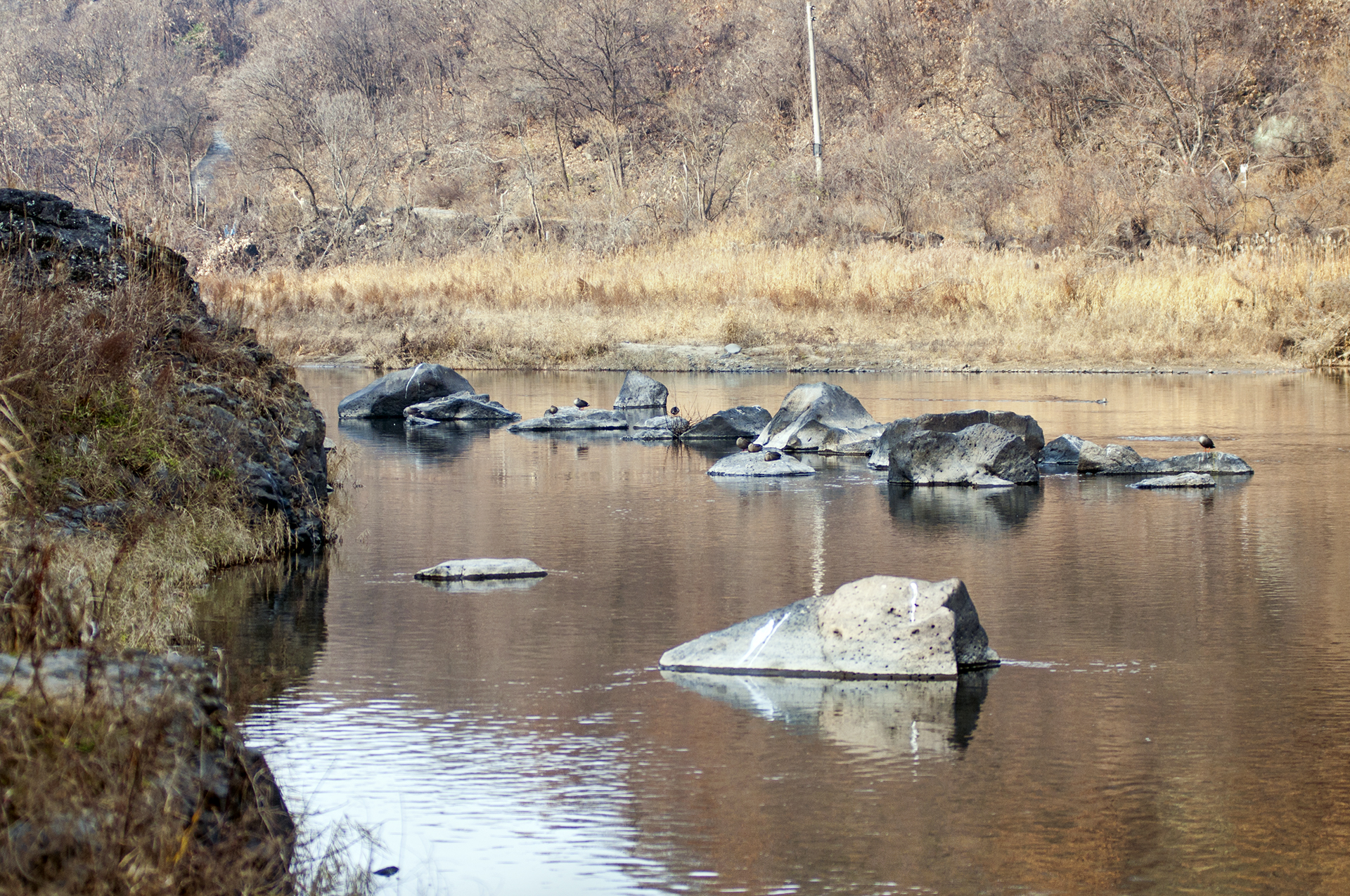 돌다리에서 더 상류쪽은 잔잔한 호수같은 풍경을 보여준다.