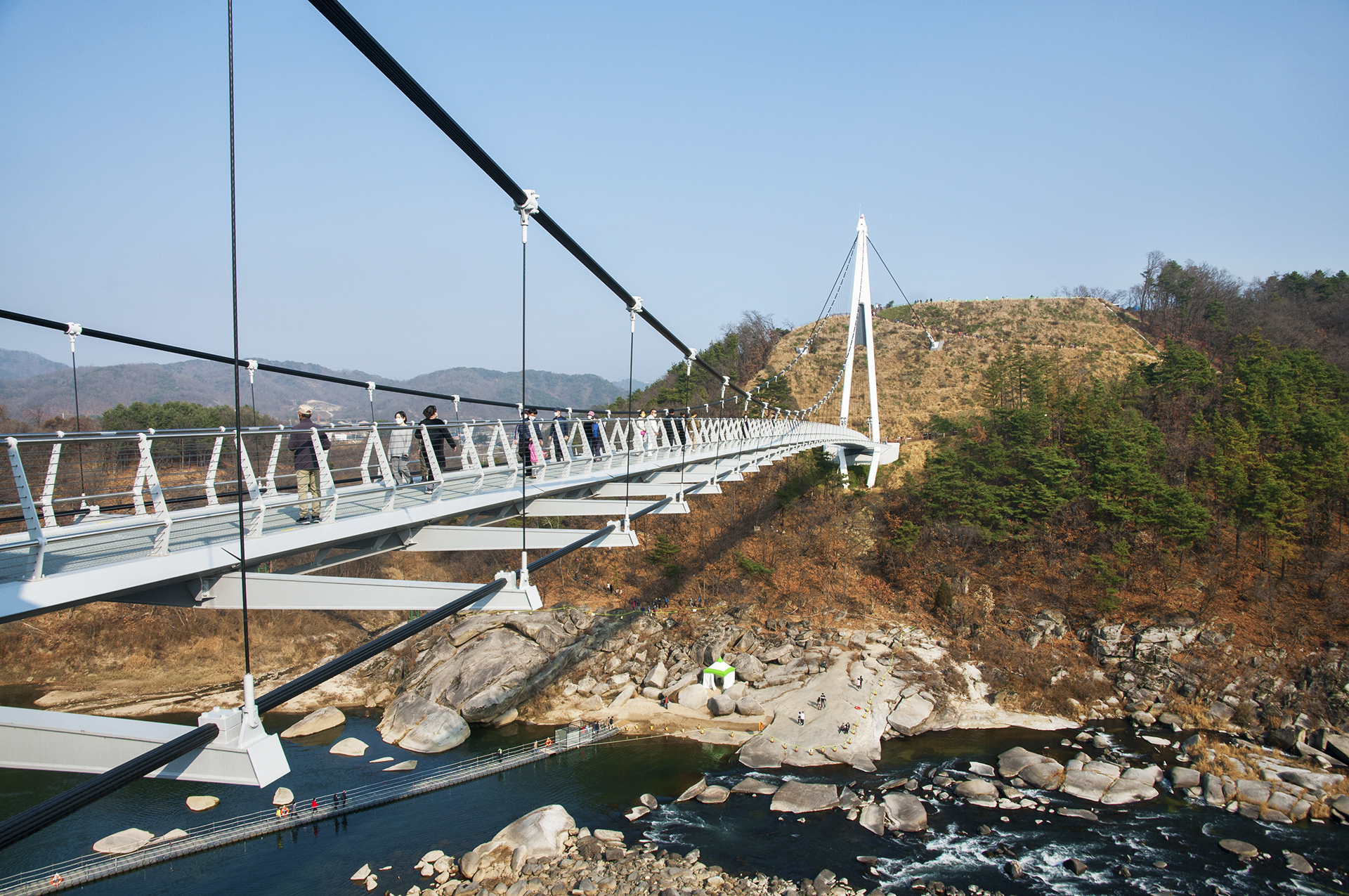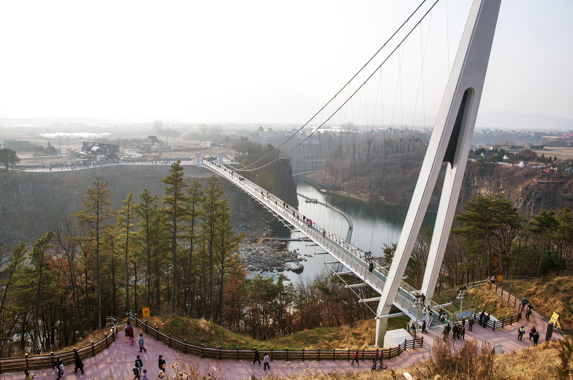 연장 180m, 폭 3m의 1주탑 비대칭 현수교로 만들어진 은하수교