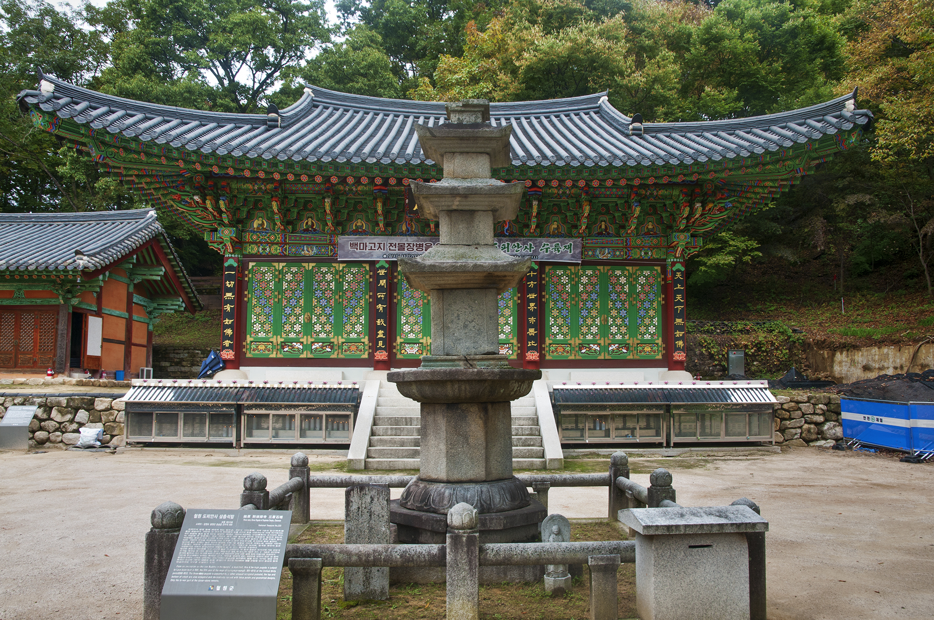 대적광전 앞 보물 제223호 삼층석탑의 모습