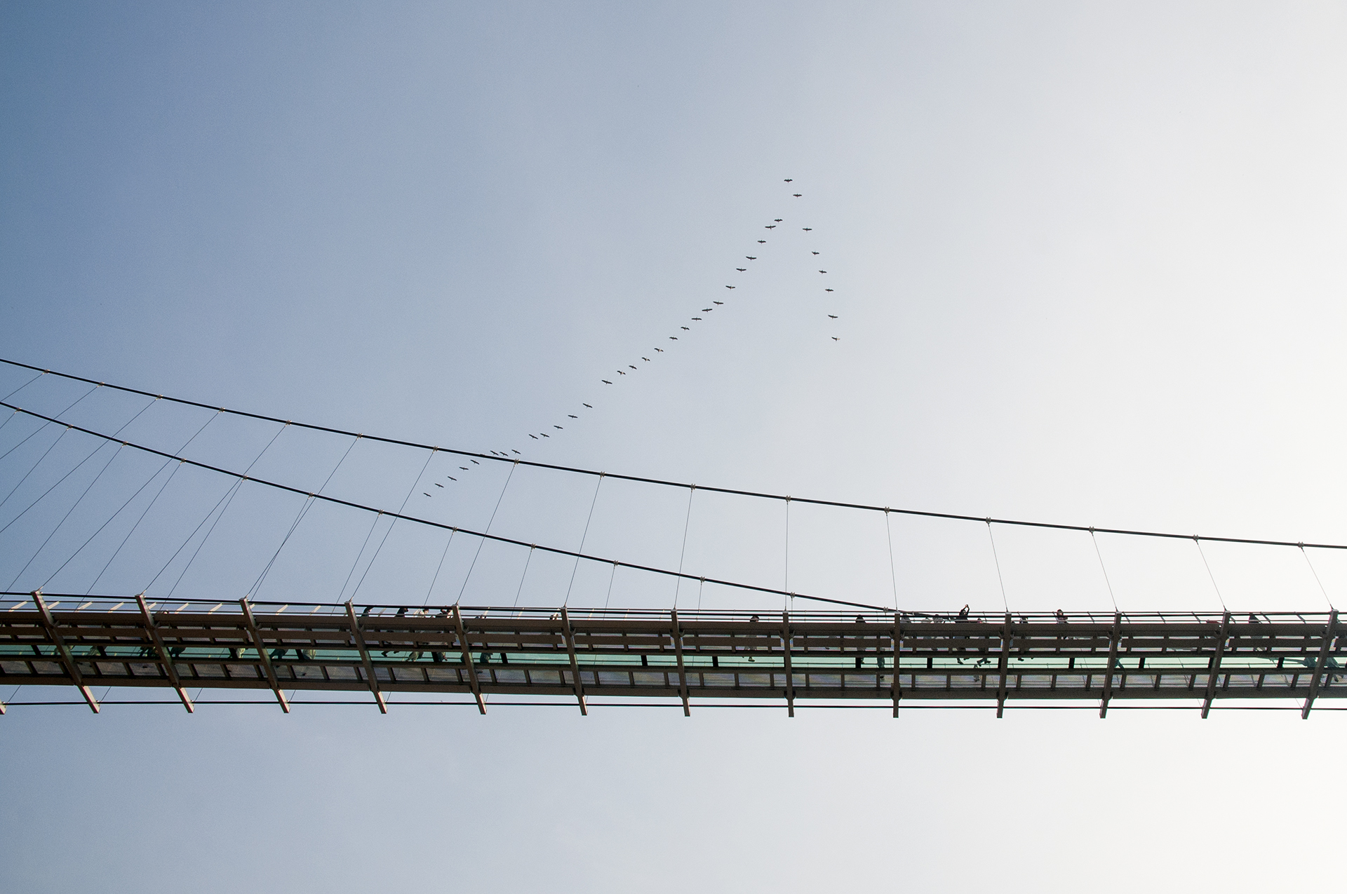 물윗길에서 바라본 은하수교 위로 철새들이 줄지어 날아가고 있다.