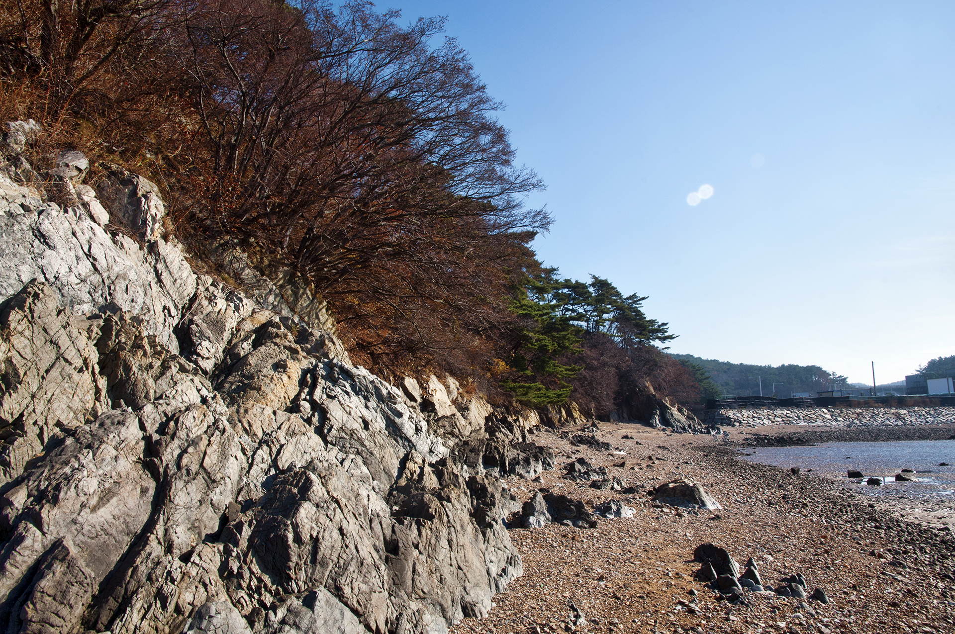 은전각에서 잠깐동안 숲길을 걸었던 지점에 도착, 이번에는 그냥 해안으로 걸어간다.