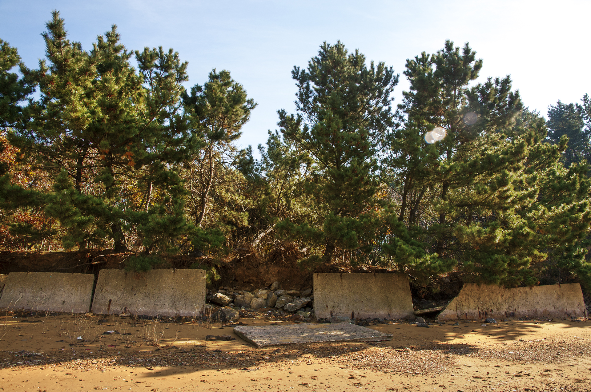 흙이 무너지는 곳에 엉성한 콘크리트 구조물을 설치해 두었지만 파도에는 역부족으로 보인다.
