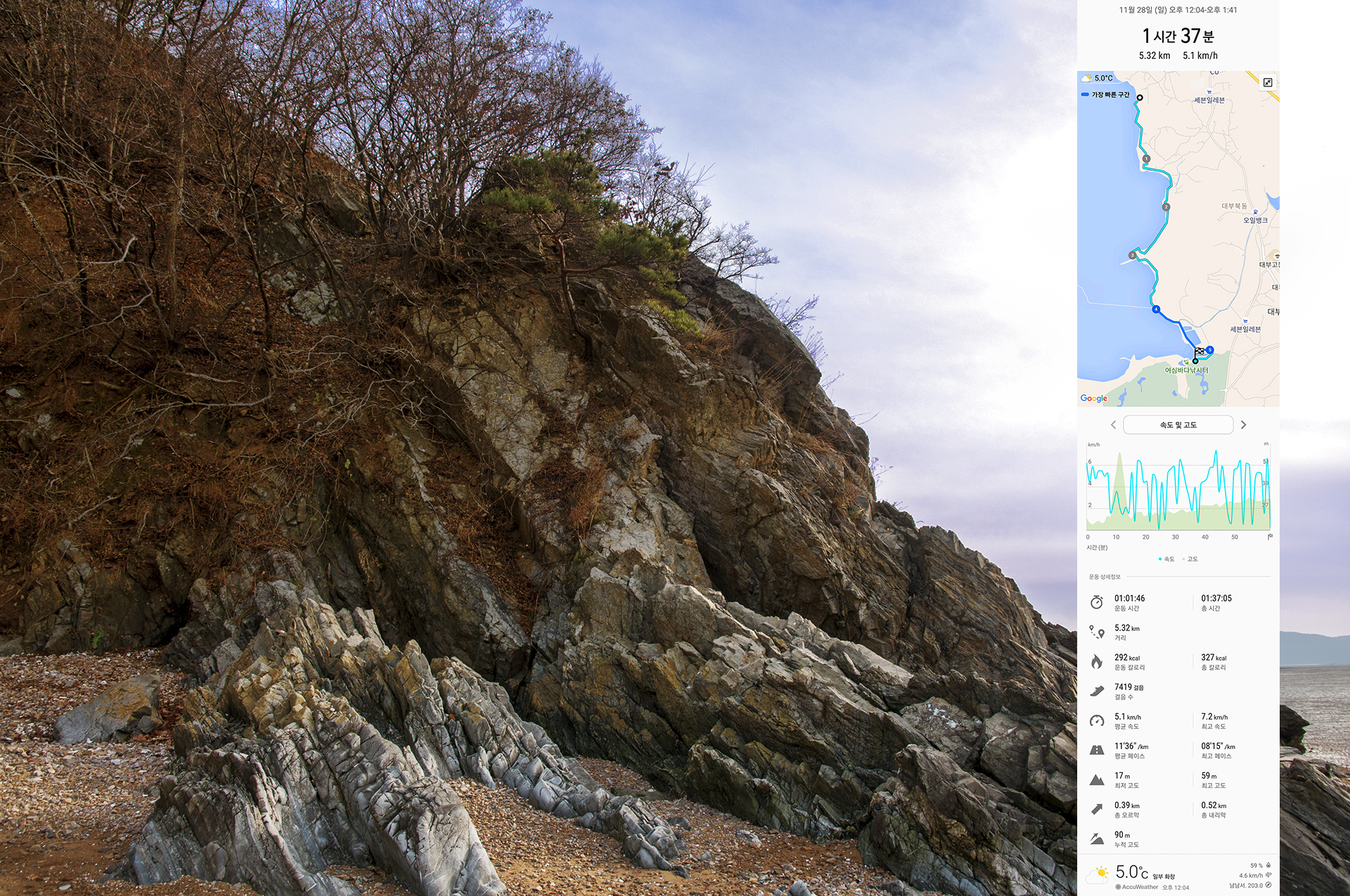 도로를 따라 조금 더 걷다가 해안길로 내려가는 길이 있어서 냉큼 내려오고 말았다~ㅋㅋ