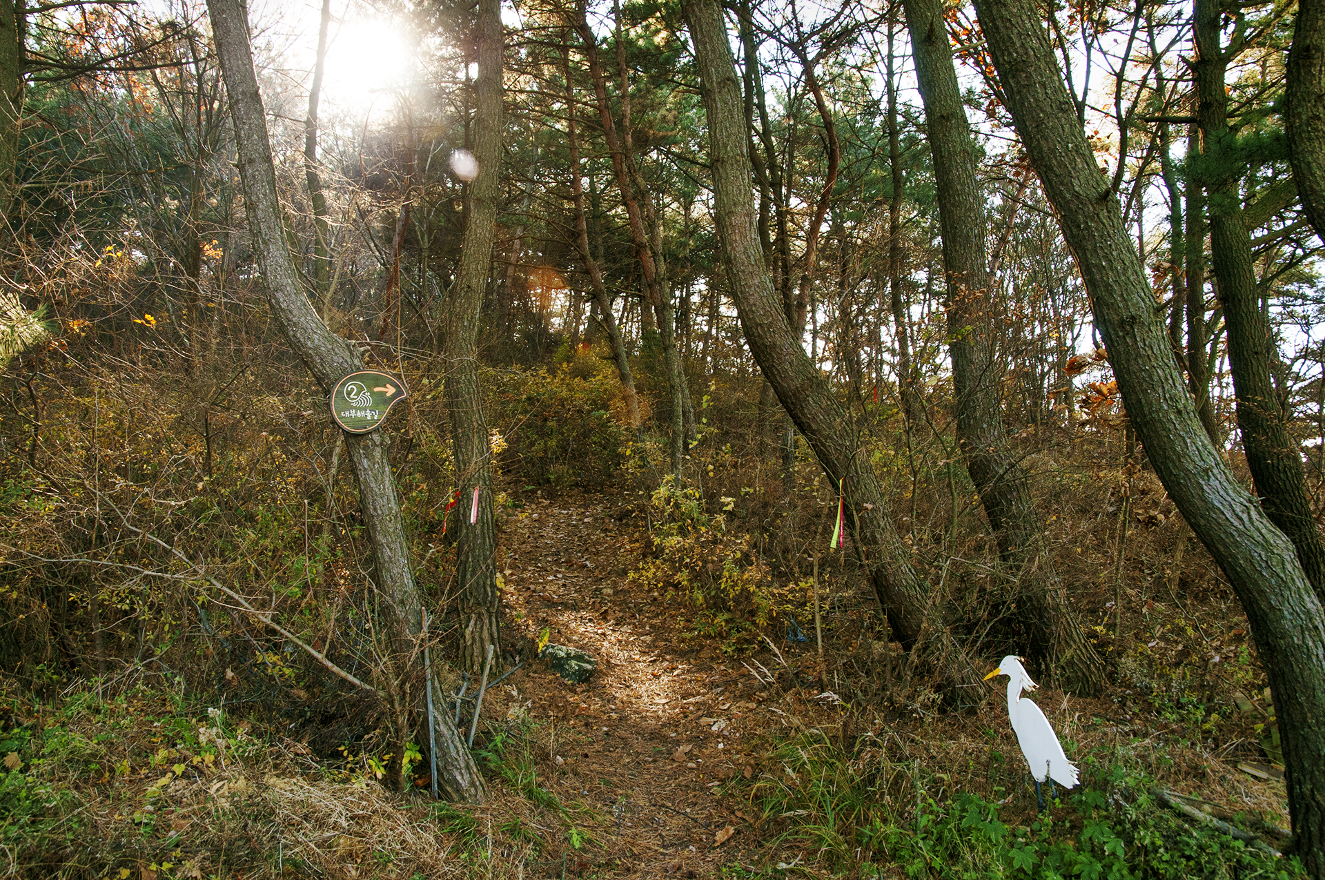 노랑부리백로가 숲으로 올라가는 길을 안내해주고 있으니 정코스로 걸어보려면 이곳으로 가면 된다.