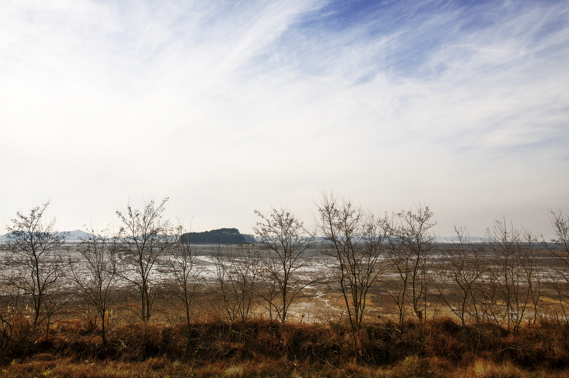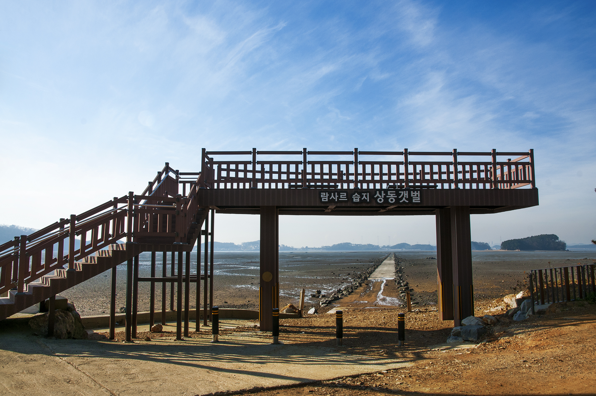 전망데크에 올라가 바라본 상동갯벌의 모습.