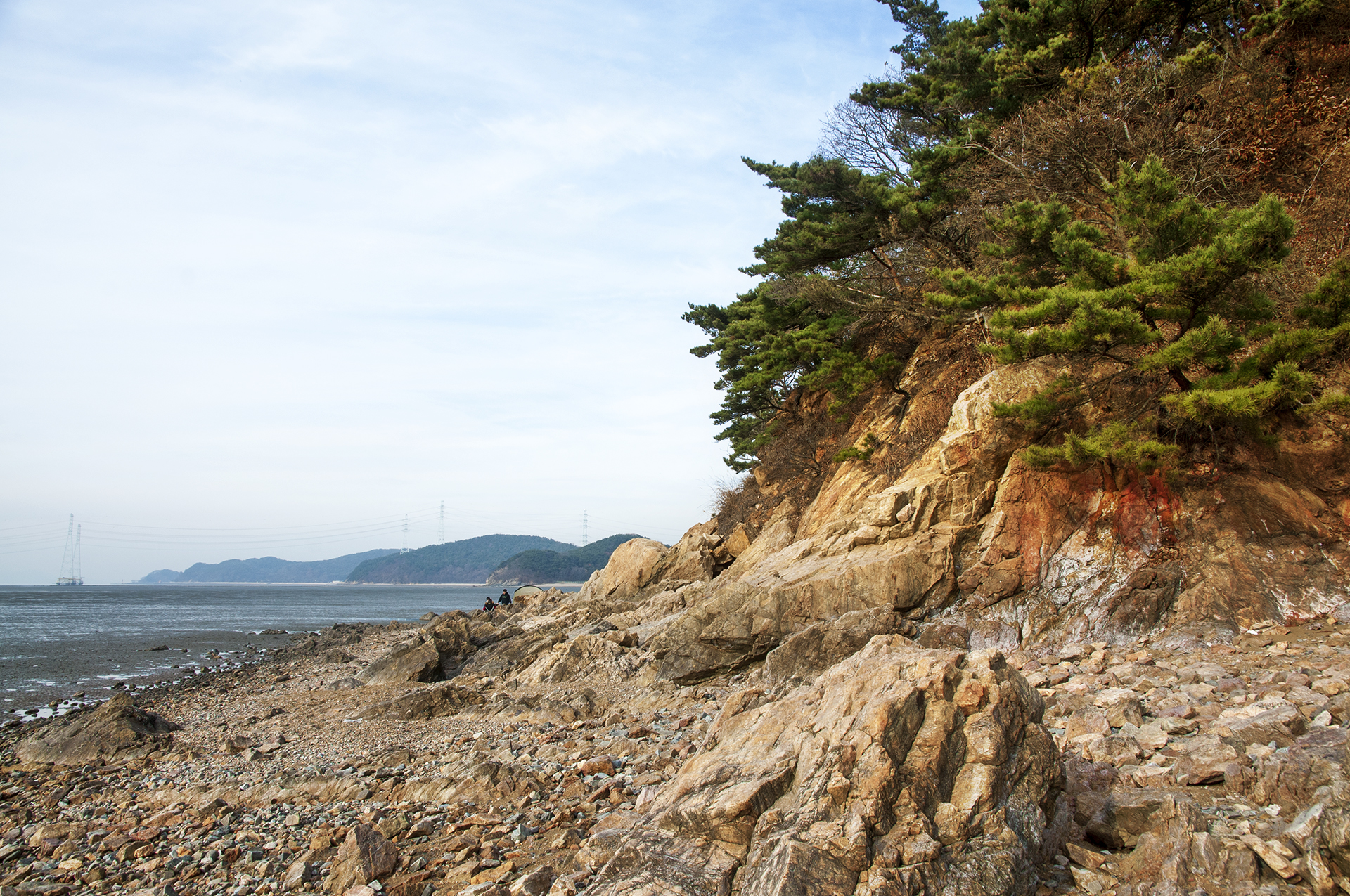 지금은 썰물때라 물이 빠져 갯벌이 훤히 드러났다. 지체없이 해안길을 따라 걷는다.
