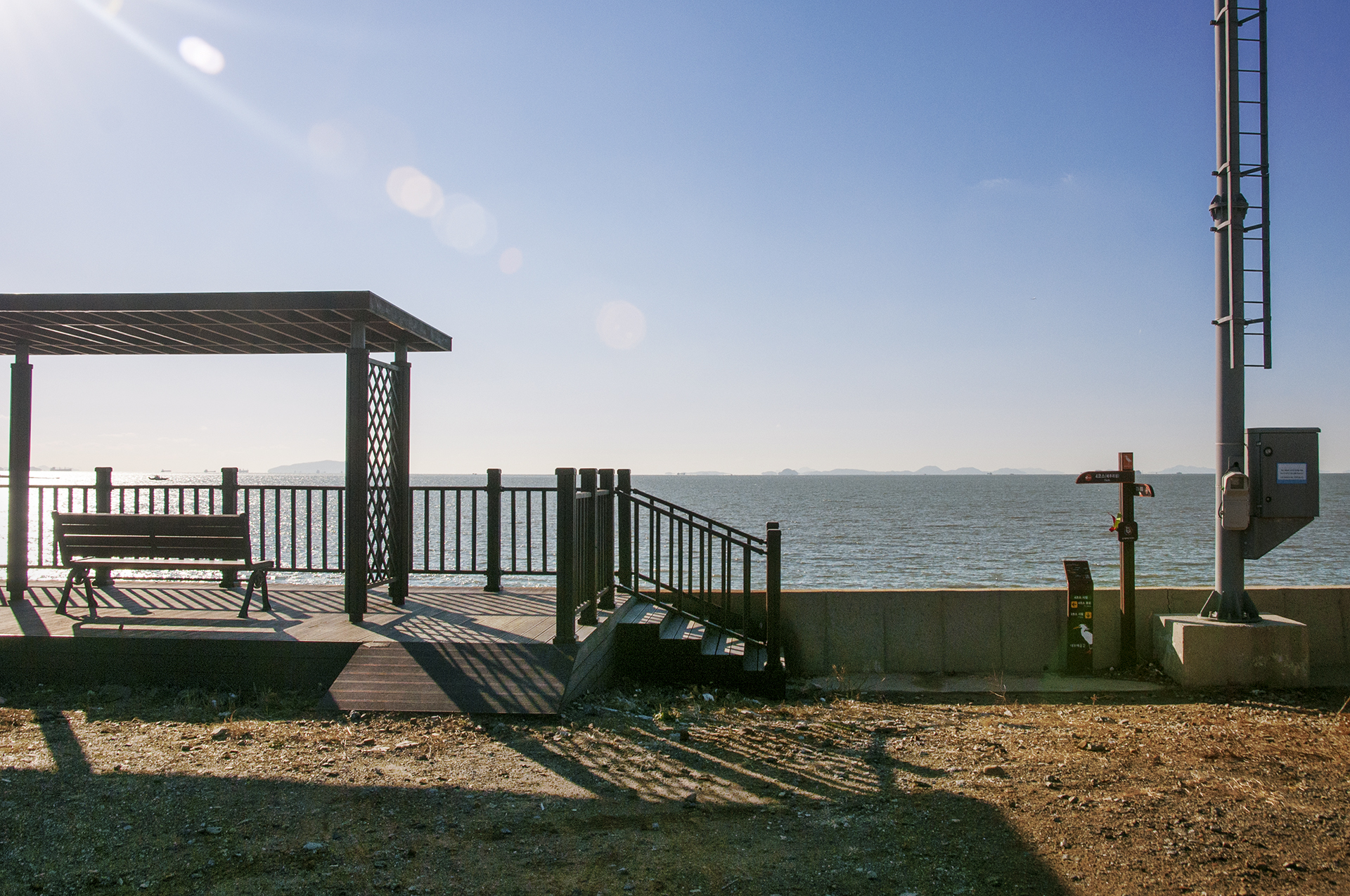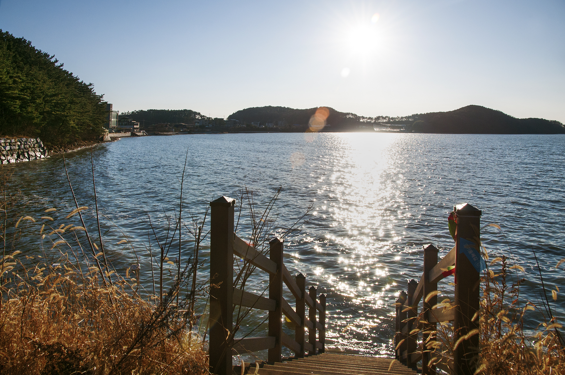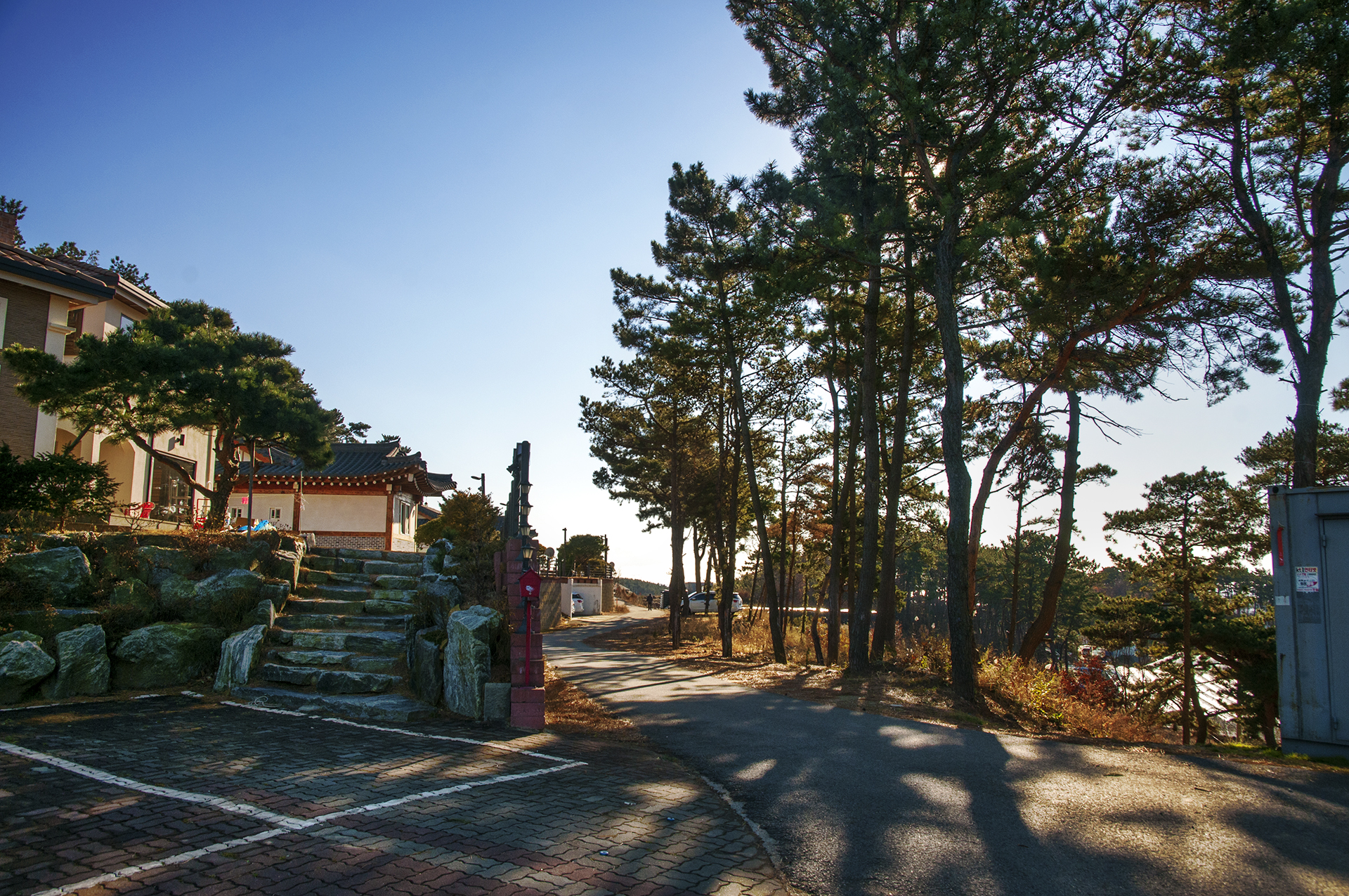중간 지점에 바다를 조망할수 있는 쉼터가 조성되어 있어 쉬어가기 좋은 곳이다. 이 길을 따라 산이 있는 앞쪽까지 진행한뒤 해안가로 내려가면 된다.