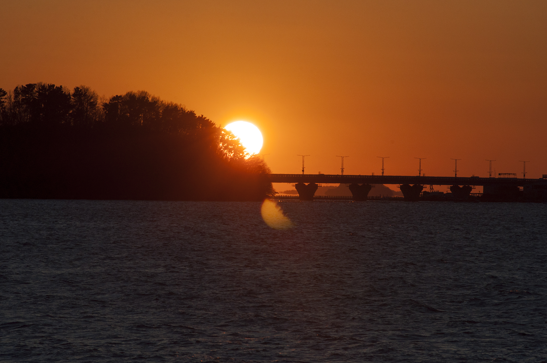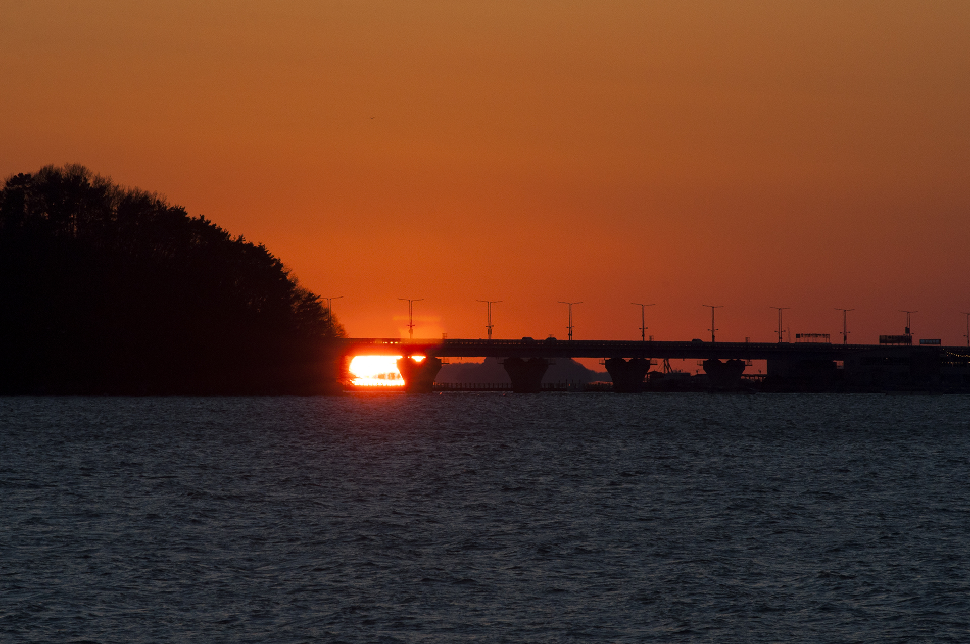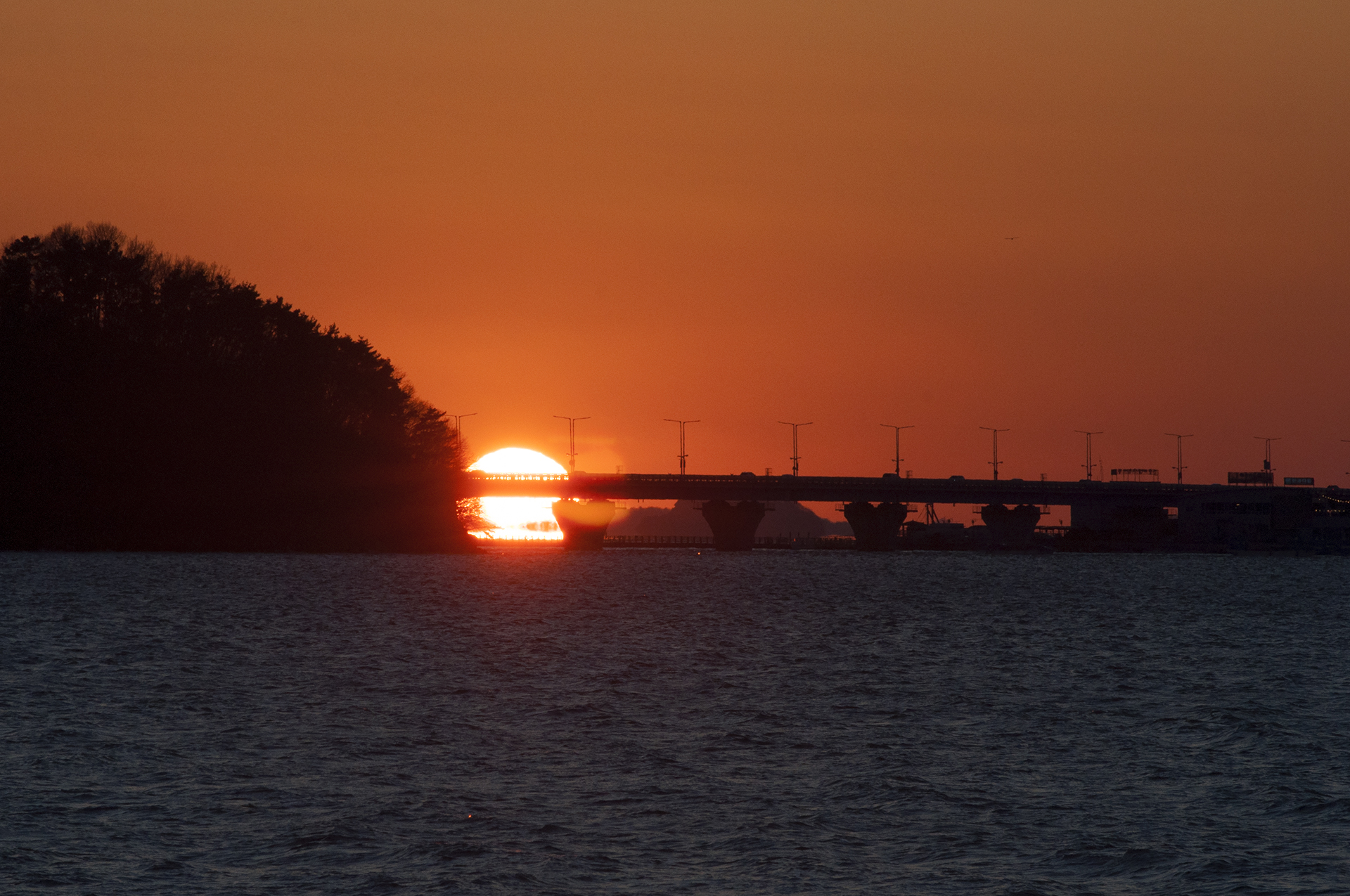 마침 상동갯벌에서 바로 보이는 선재대교 아래로 해가 떨어지는 시기였다.