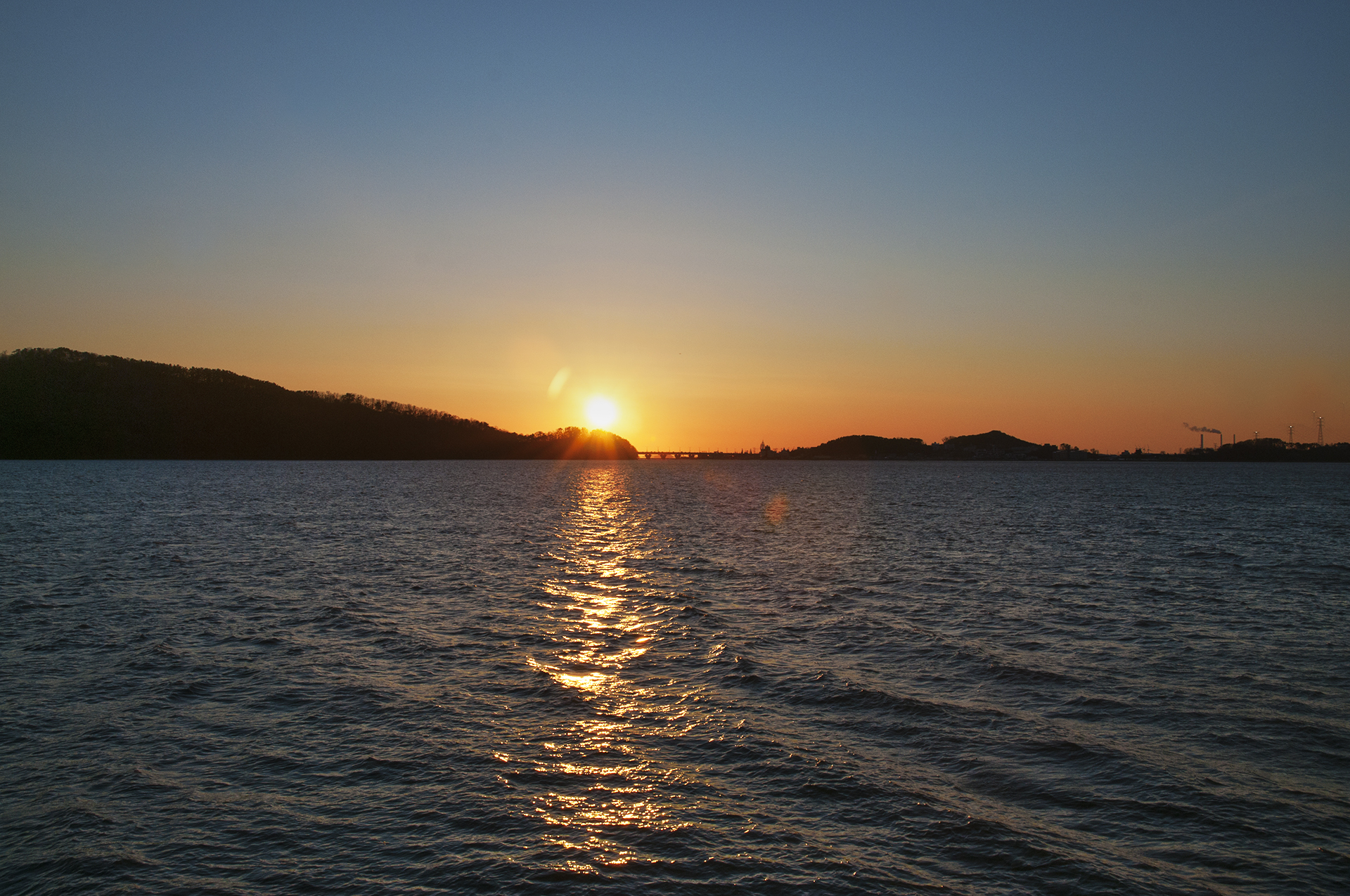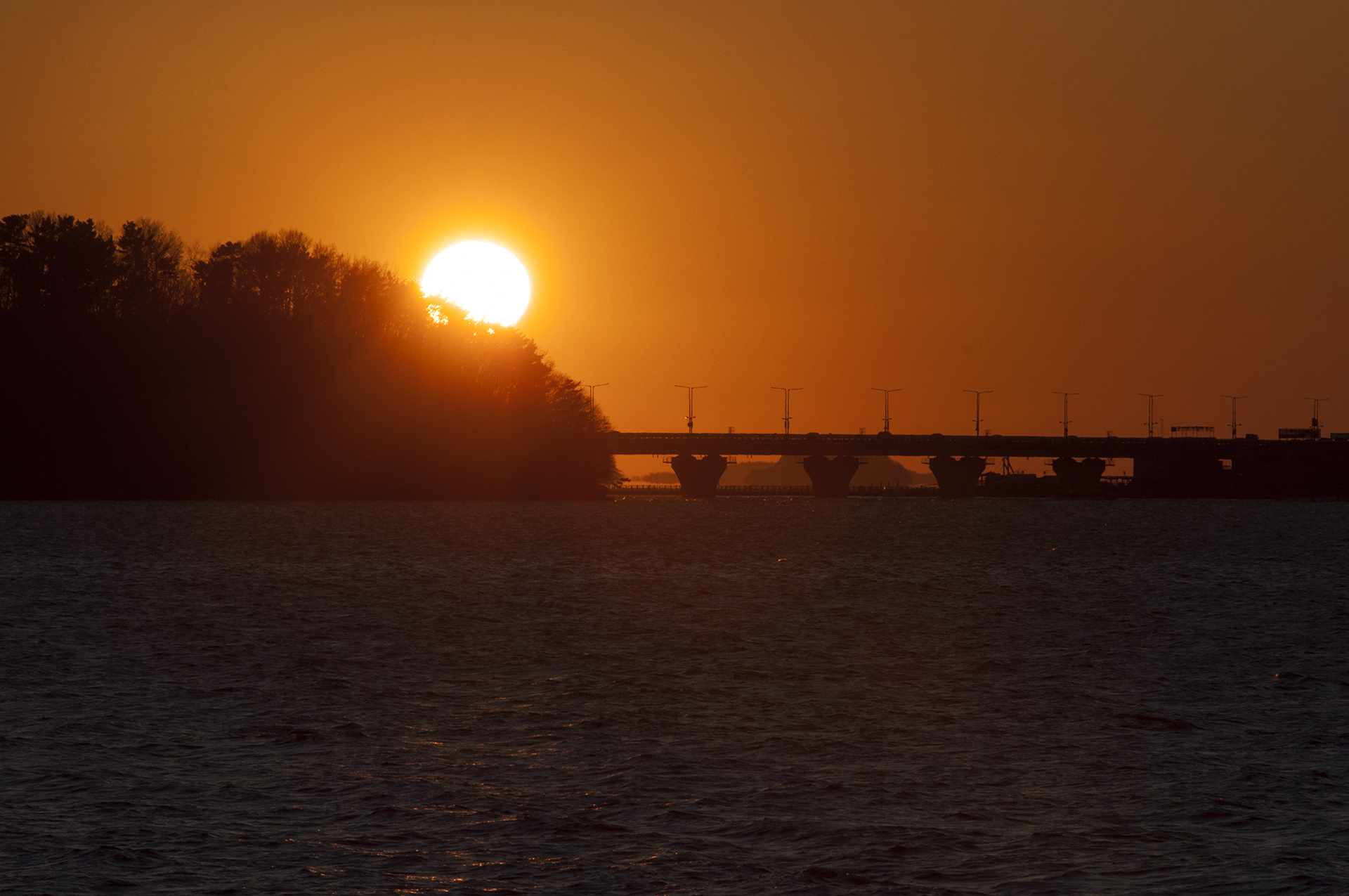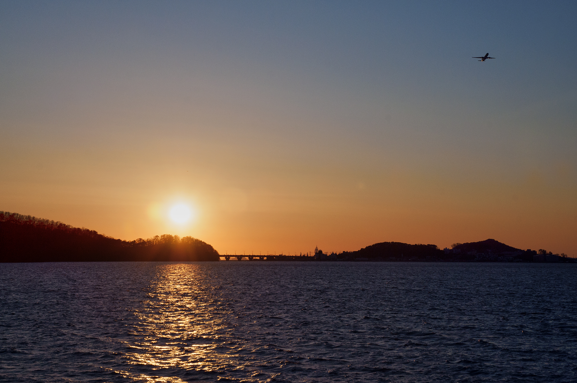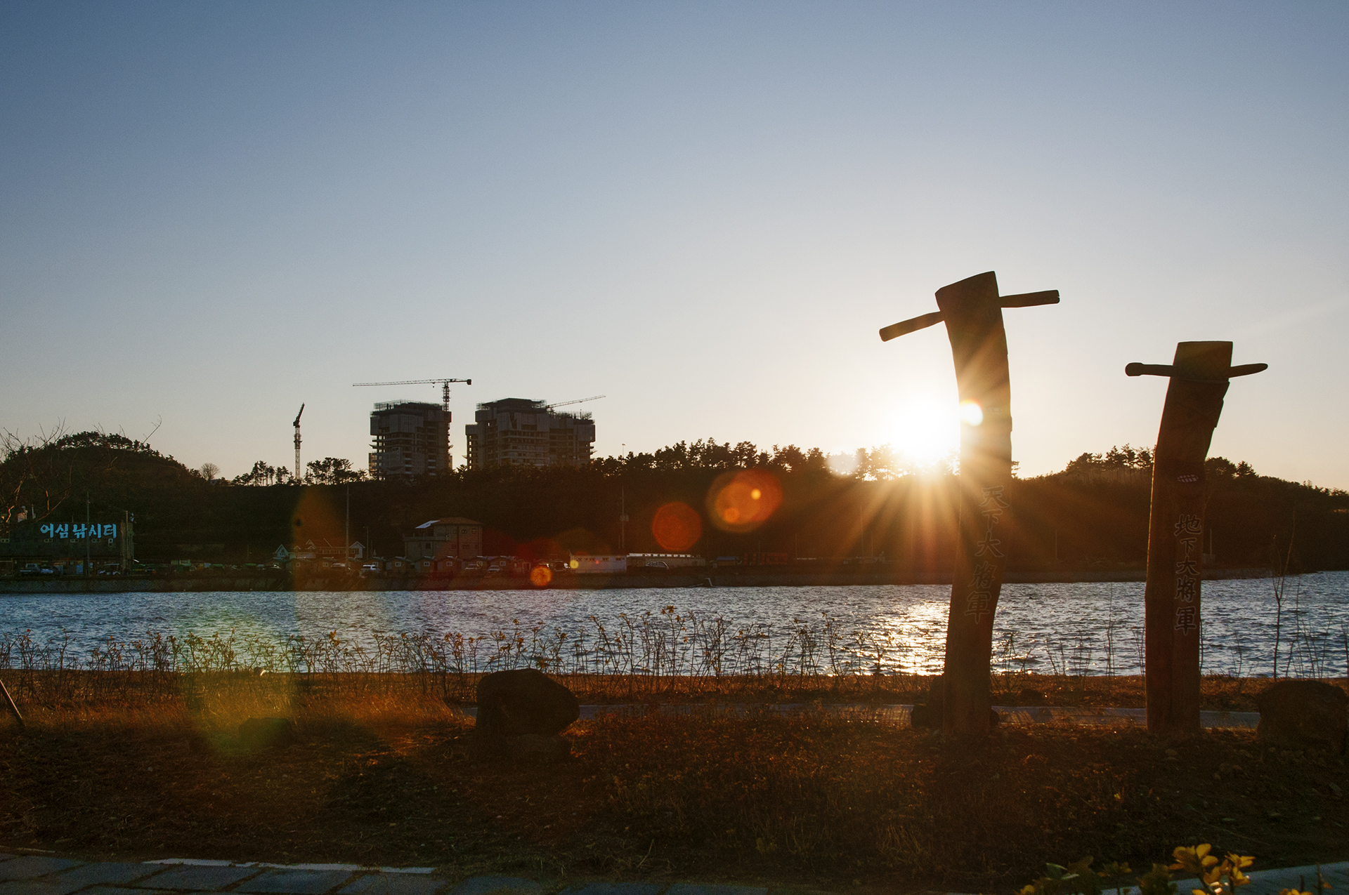 마침 상동갯벌에서 바로 보이는 선재대교 아래로 해가 떨어지는 시기였다.