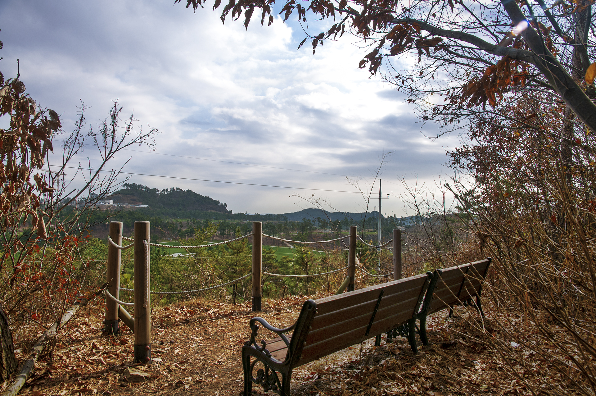 좌측에 있는 벤치에서 첫 휴식을 갖는다.