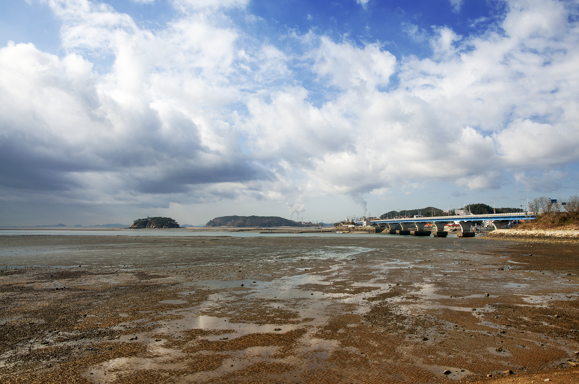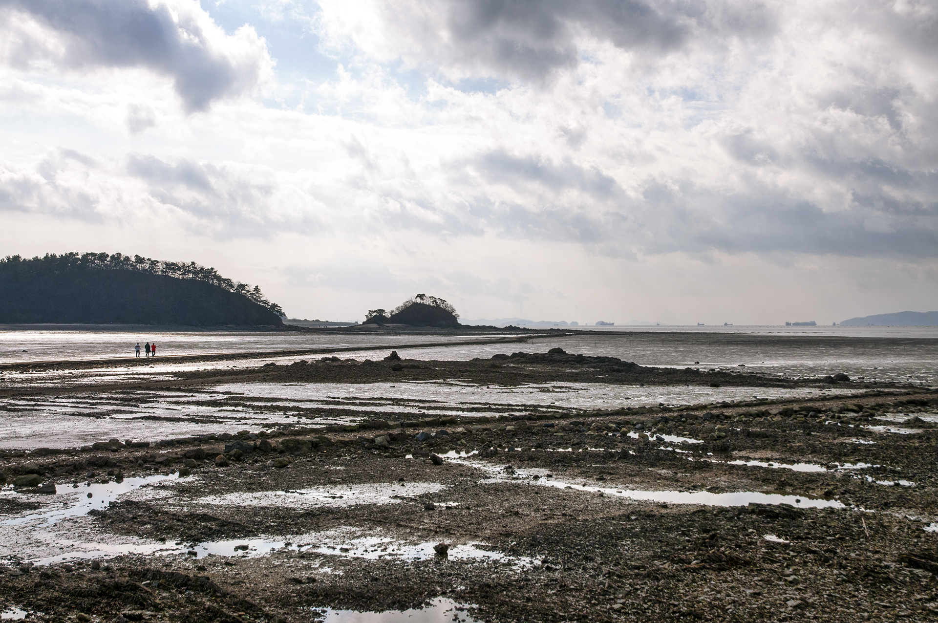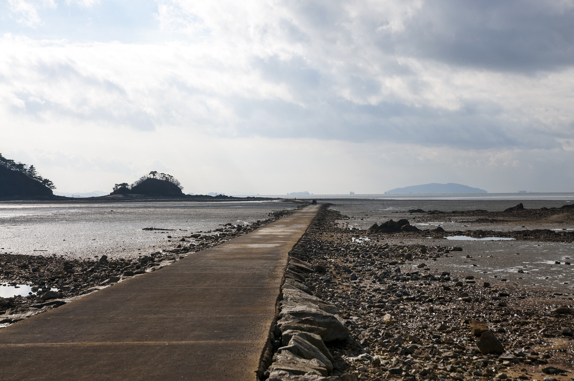 도로 끝까지 걸어오면 정면에 물빠진 갯벌이 펼쳐진다.