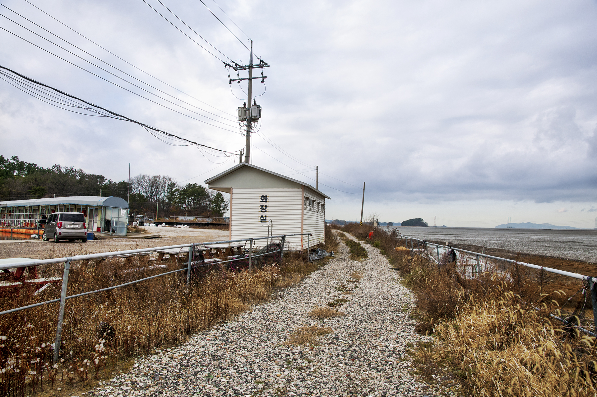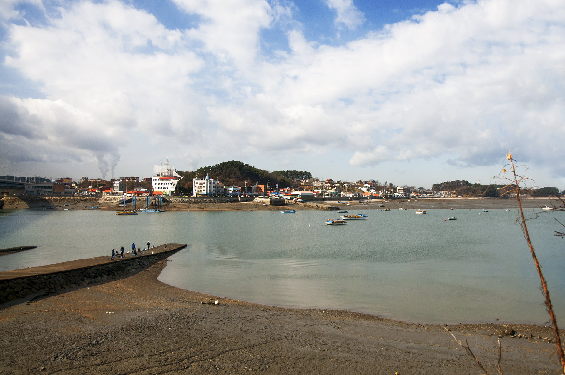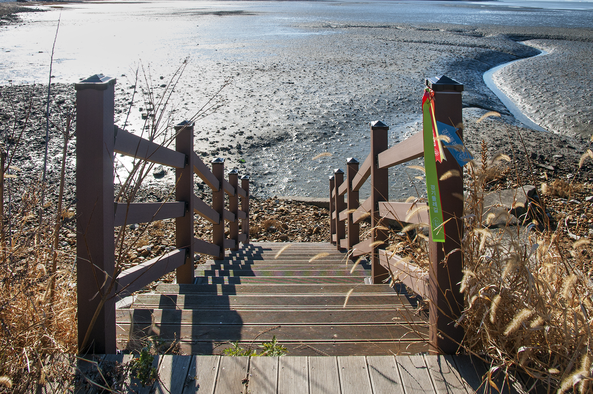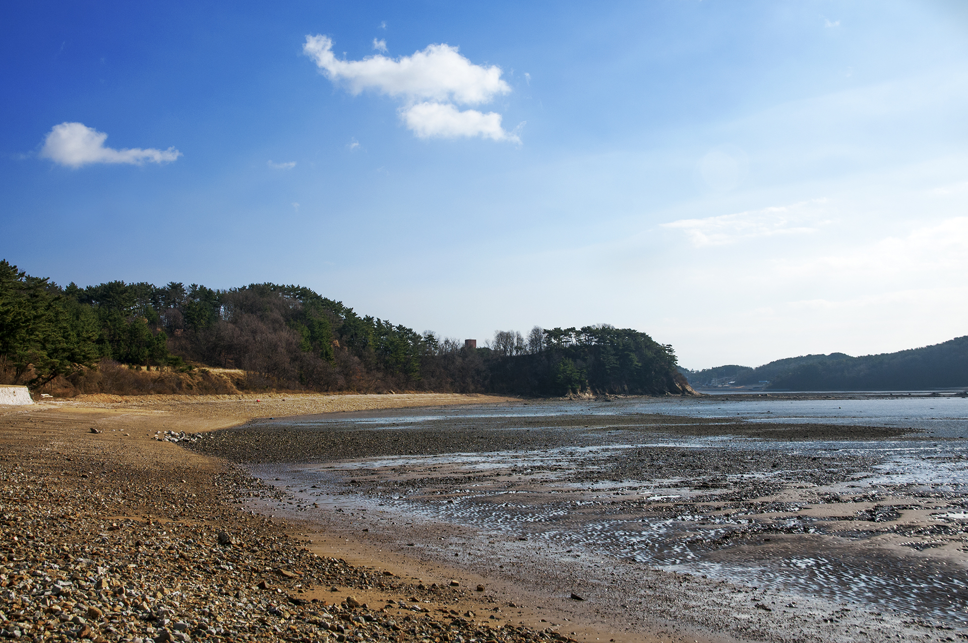 도로 끝까지 걸어오면 정면에 물빠진 갯벌이 펼쳐진다.