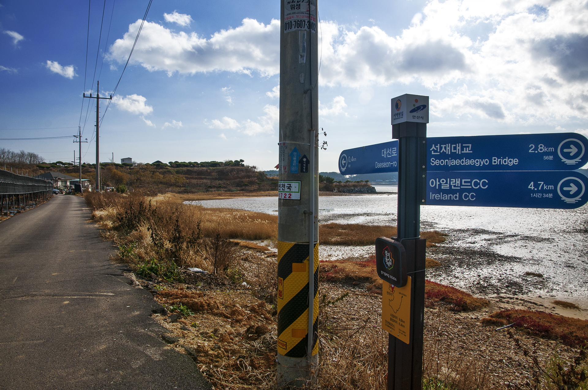 방조제를 지나 0.4km 남은 대선로까지는 우회로인 마을길로 간다.