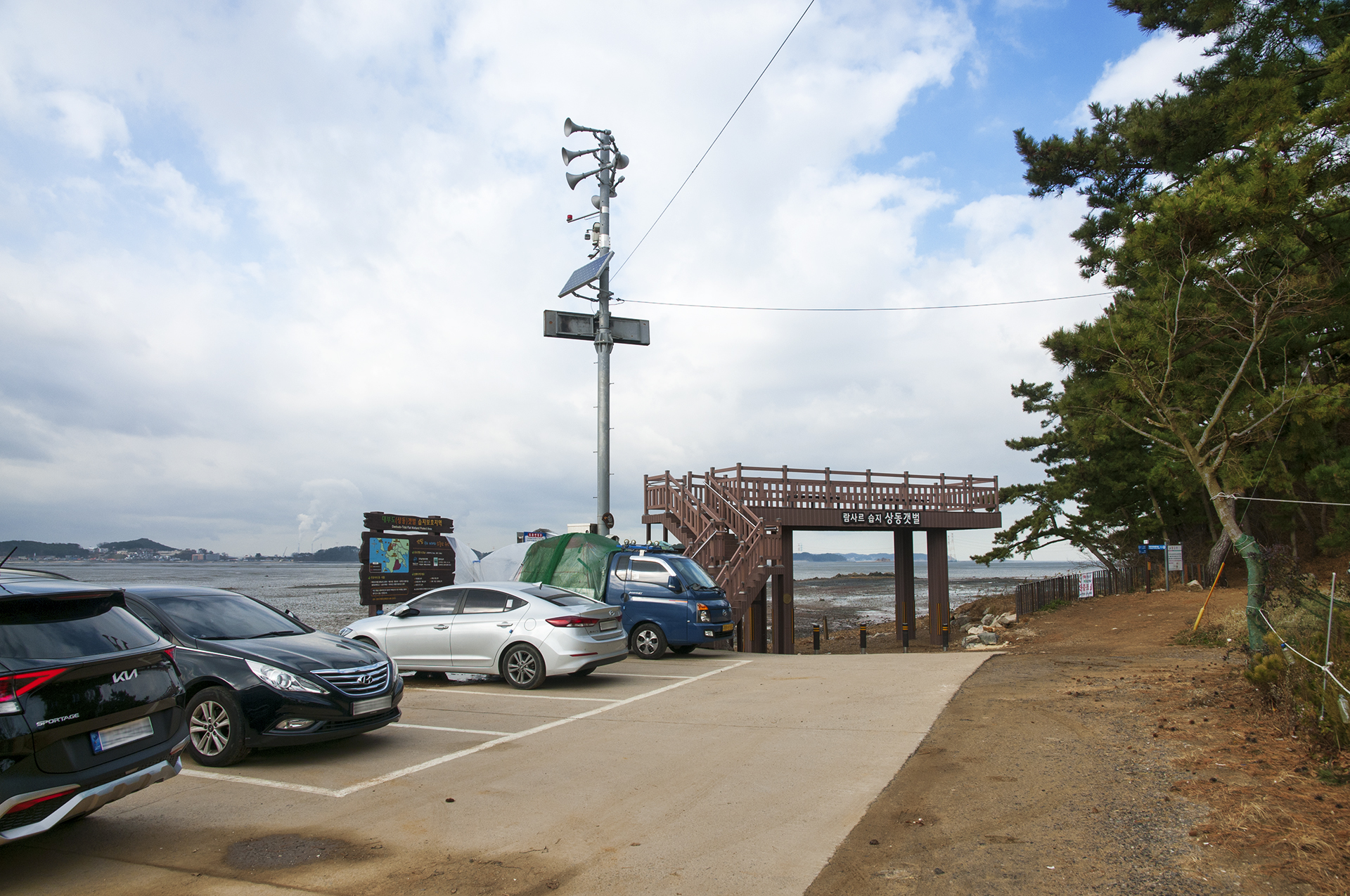 우측 갯벌쪽으로는 주차가 되어있는 상동갯벌 전망대가 보이고,