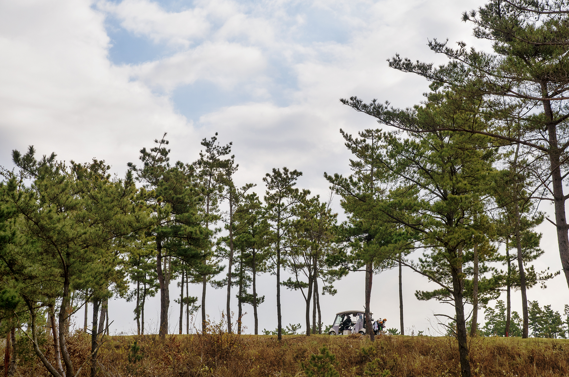 아일랜드C.C의 넓은 그린을 조망할수 있는 곳, 잠깐동안 빡세게 올라왔다고 숨이 차오른다.