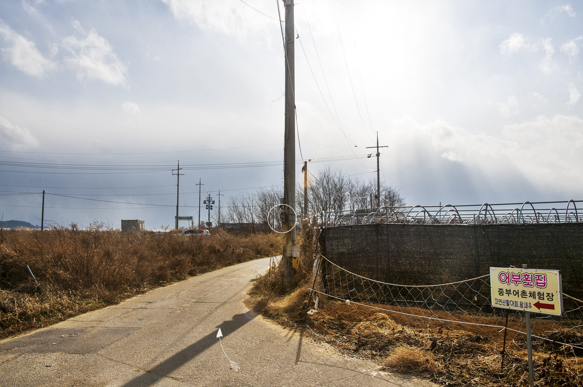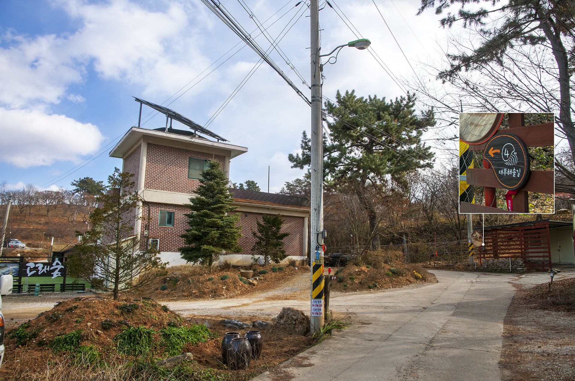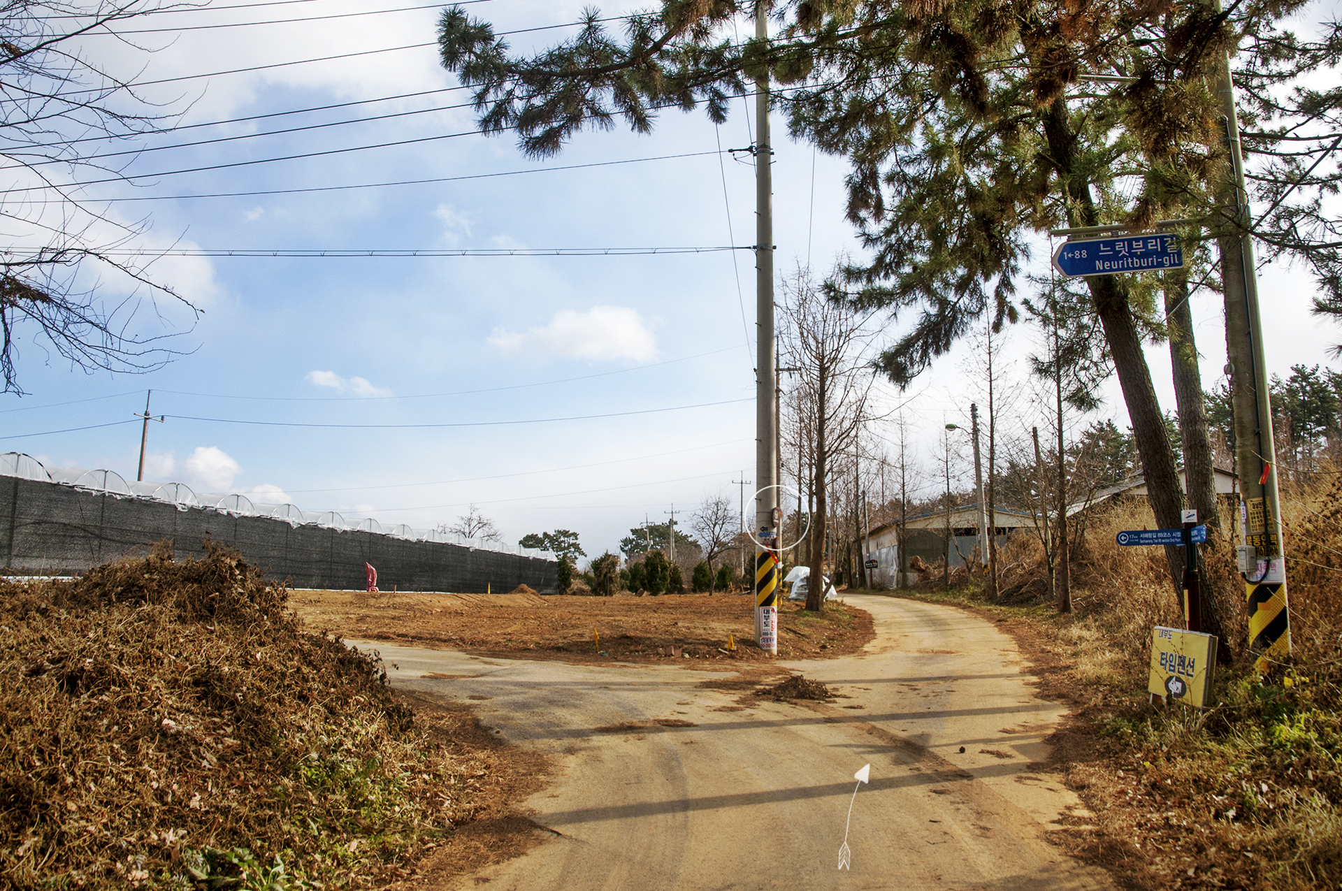 우측으로 가는 길 전봇대에 매달려 있는 로고를 보고 방향을 제대로 잡고~