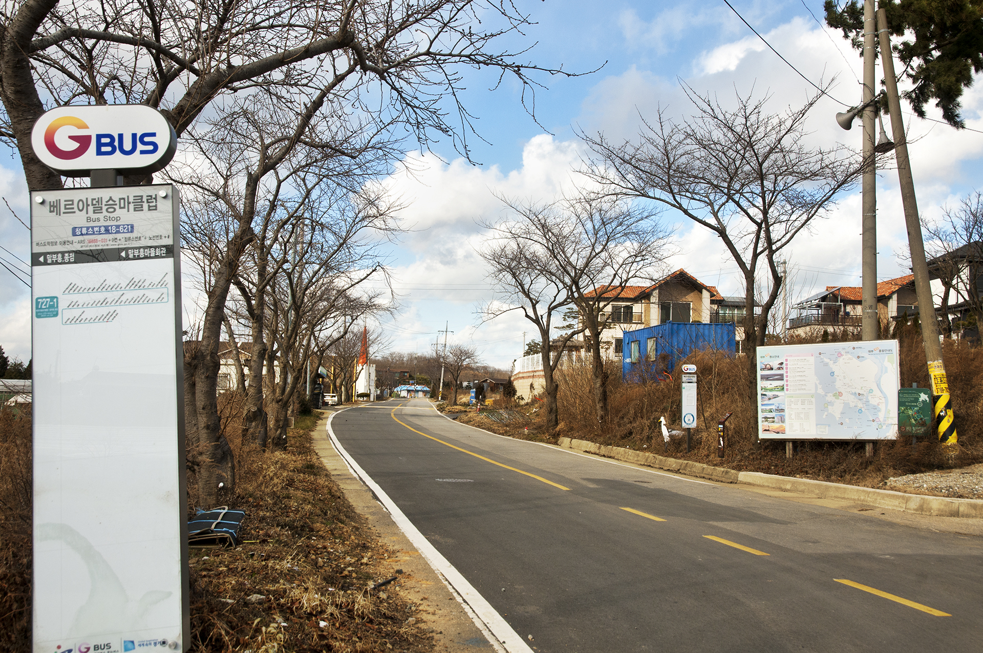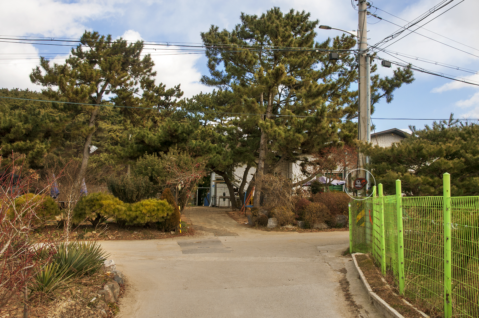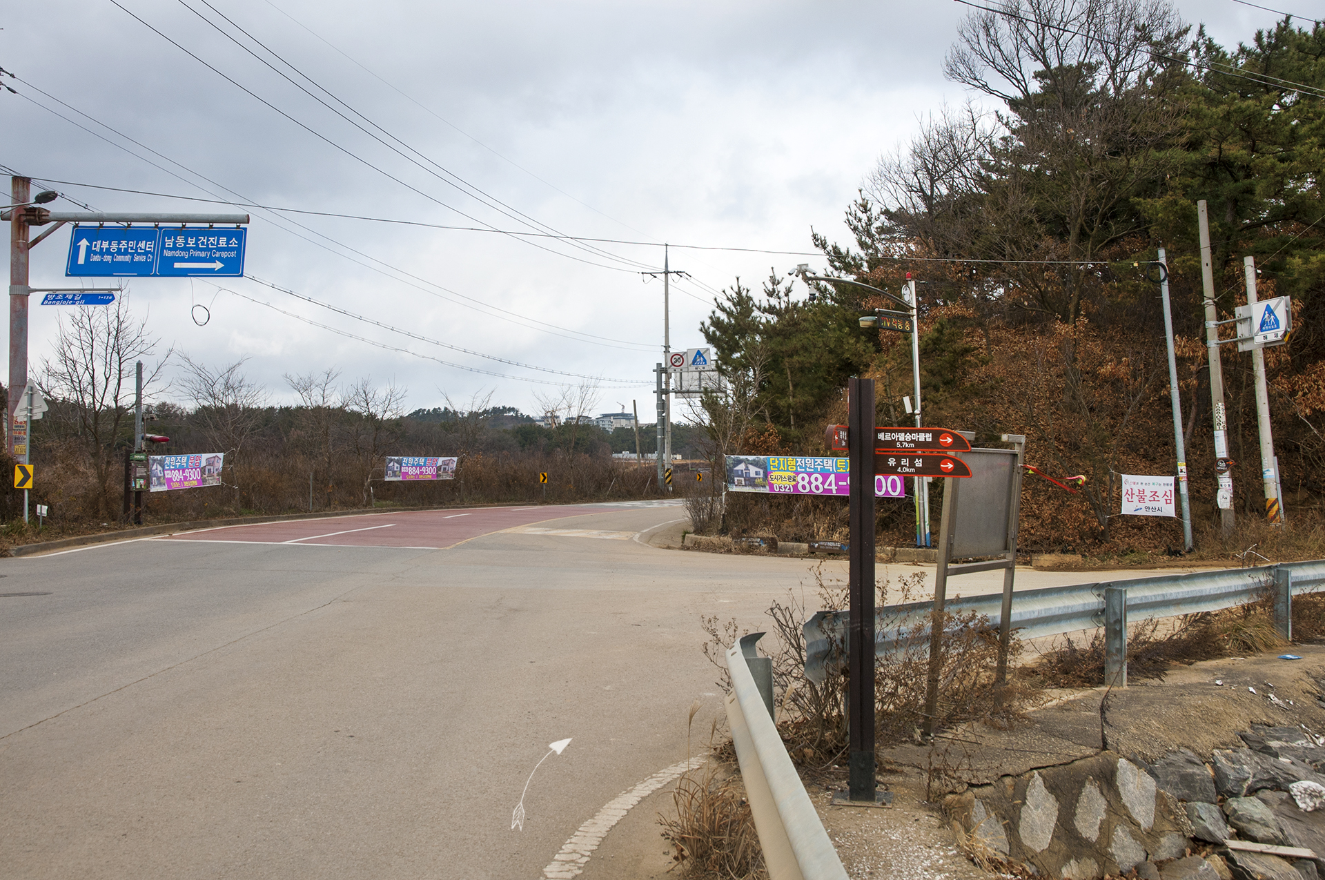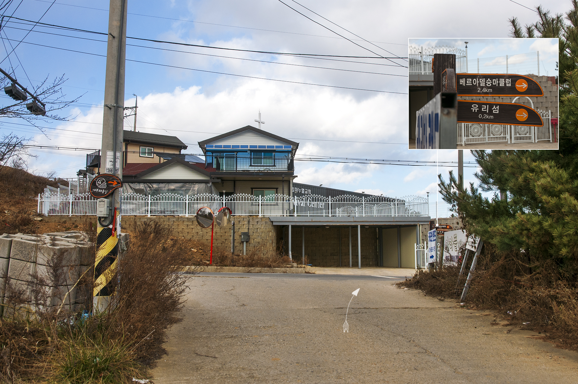 우측으로 가는 길 전봇대에 매달려 있는 로고를 보고 방향을 제대로 잡고~