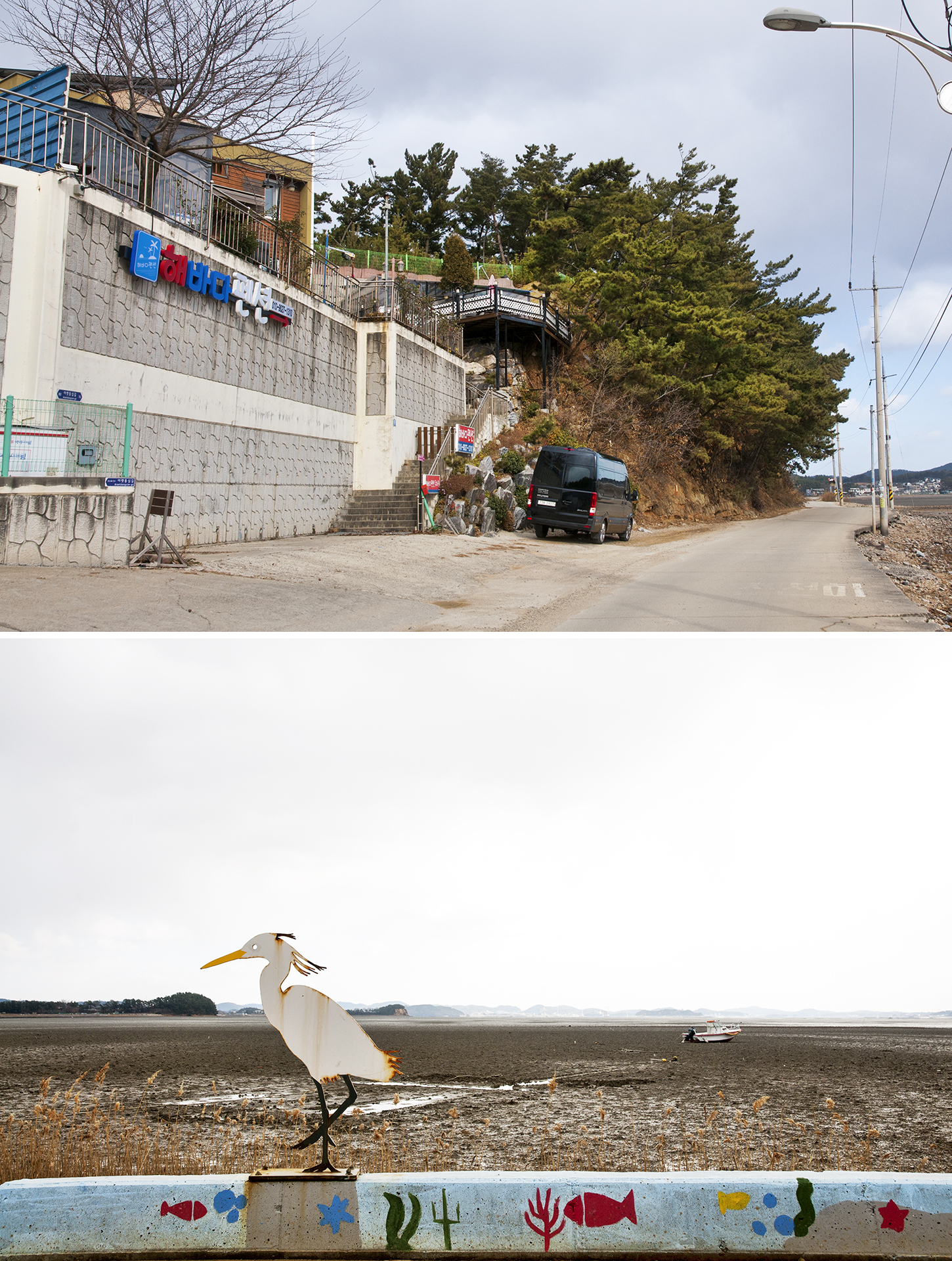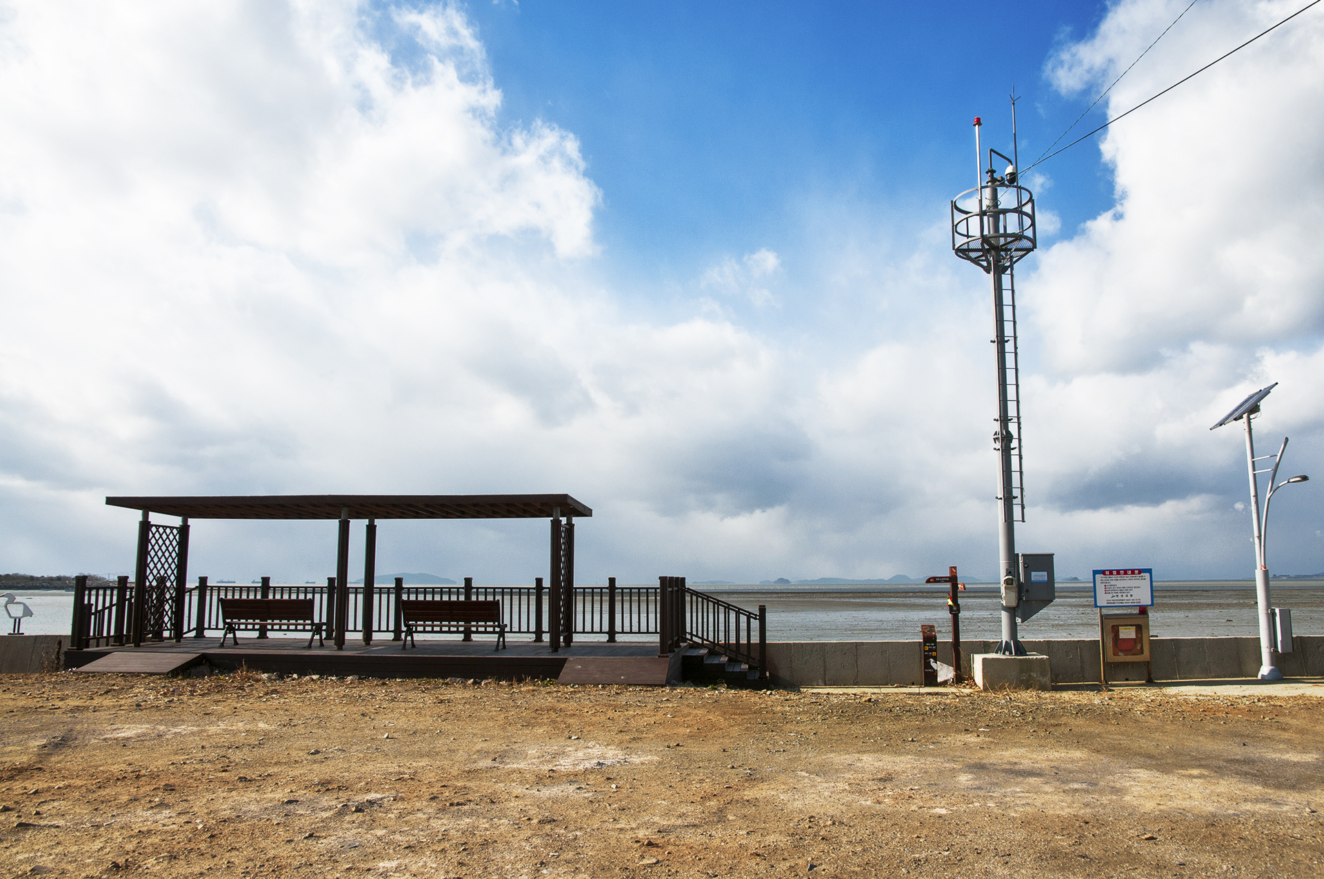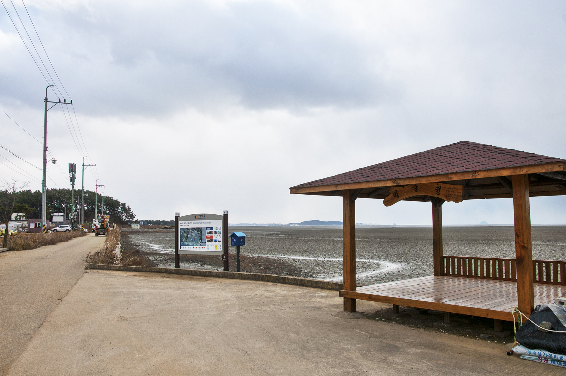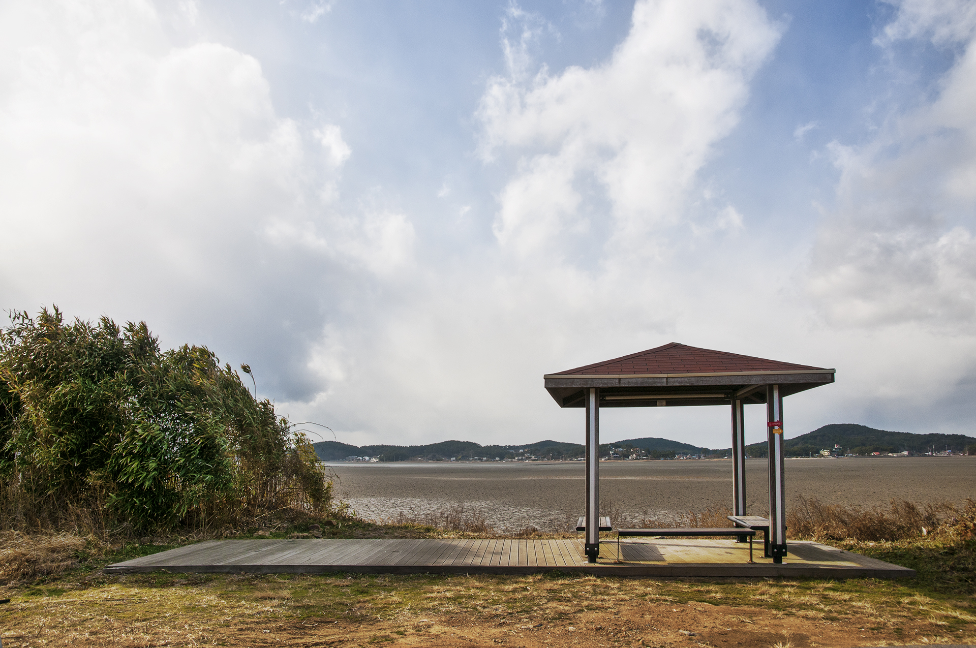 많은 펜션들을 지나면 한적한 곳에 갯벌을 바라볼수 있는 쉼터가 있다.