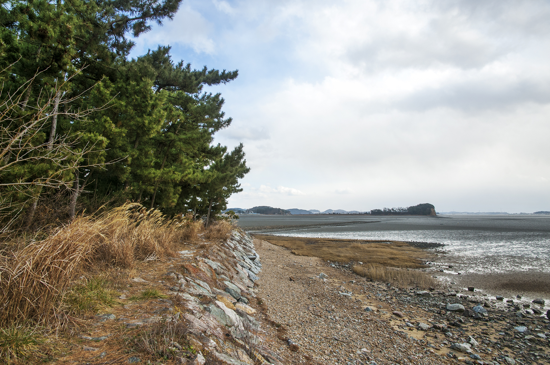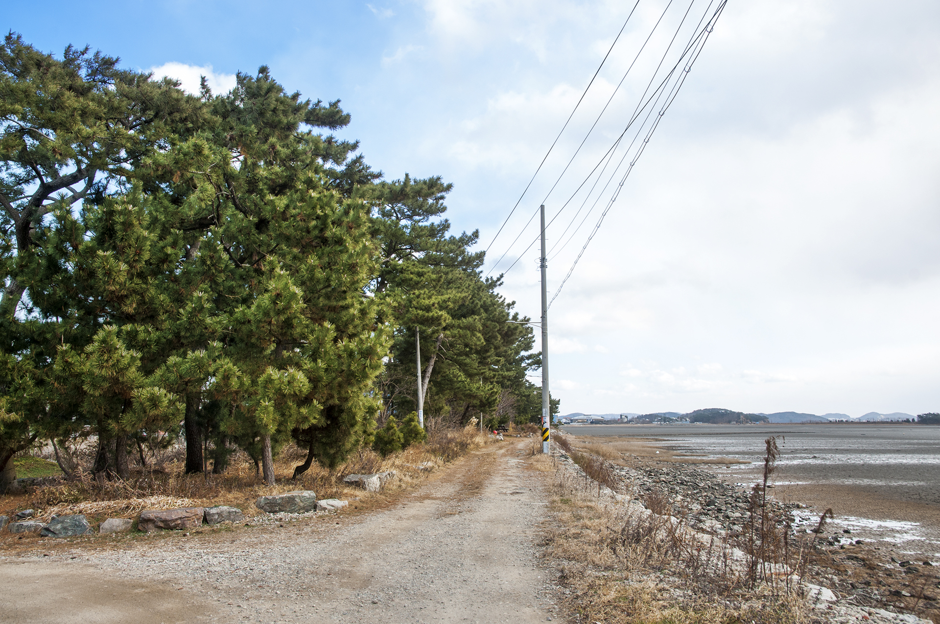 갯벌이 펼쳐진 해안을 따라 울창한 솔밭길을 걷는다.