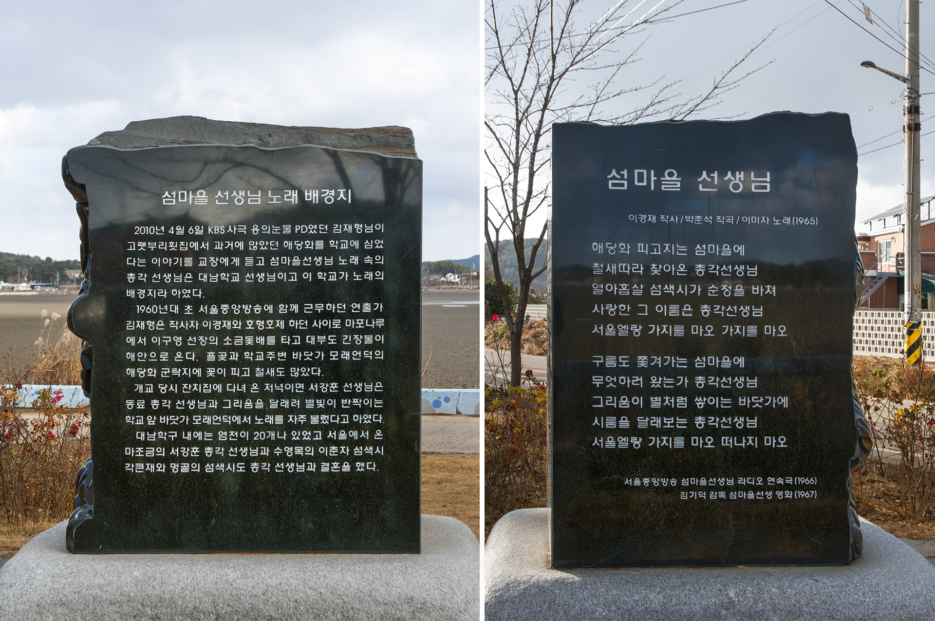 "섬마을선생님"의 노래 배경지라는 비석이 세워져 있는데, 섬마을선생님 노래 속의 총각 선생님은 대남학교 선생님이고, 이 학교가 노래의 배경지라고 한다.