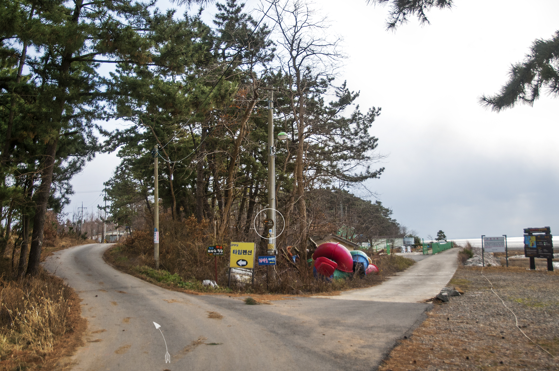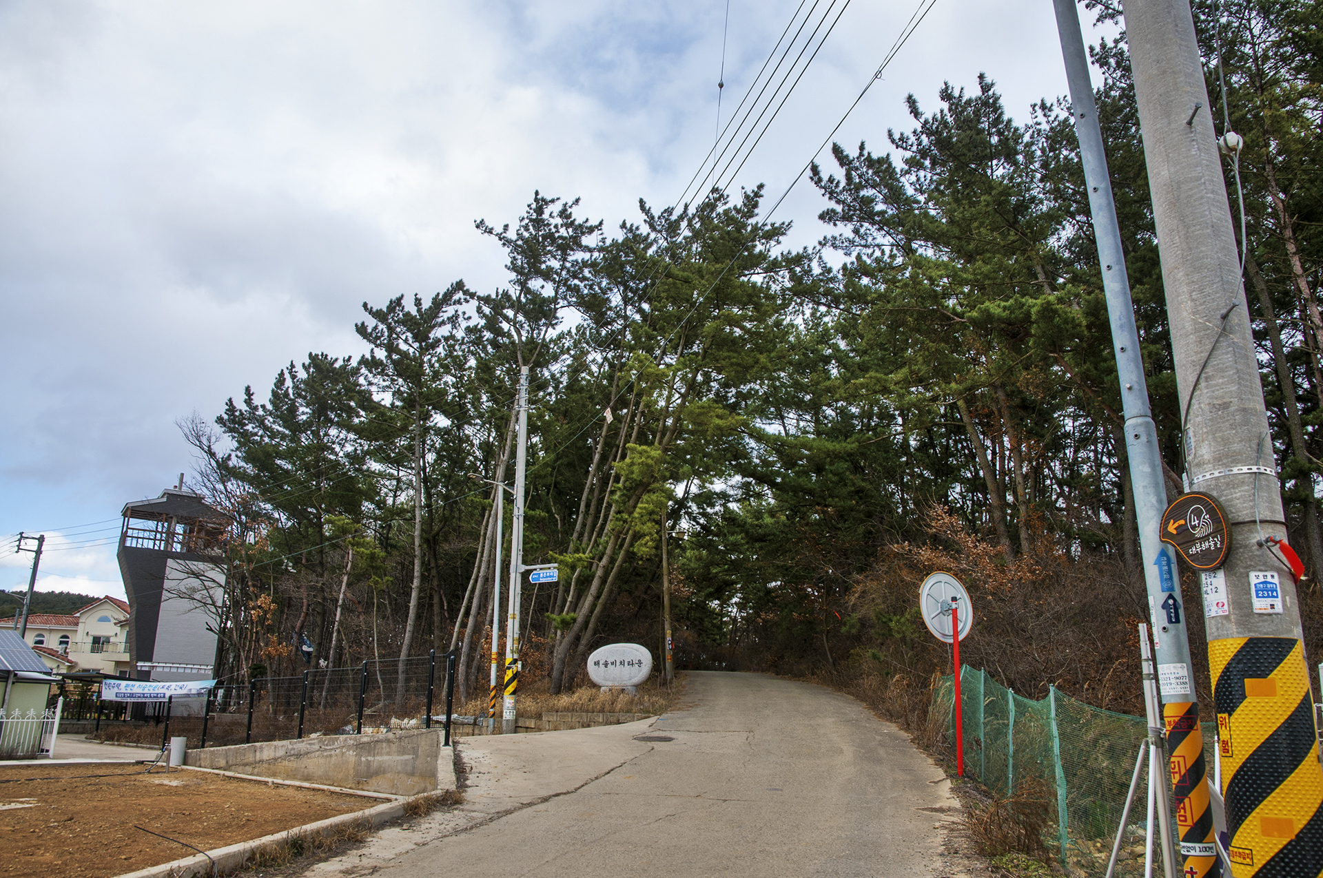비치캠핑장의 솔밭을 지나 좌측 마을길로 들어선다.