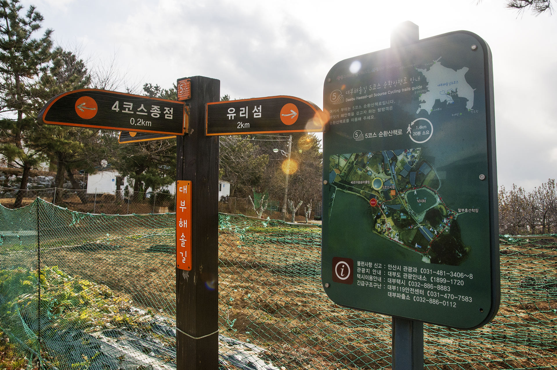 유리섬 입구에 대부해솔길 5코스 안내판이 설치되어 있는데, 그 이유는 4코스 종점에서 5코스를 출발하면 다시 부흥로를 걸어 이 길로 와야하기 때문이다.