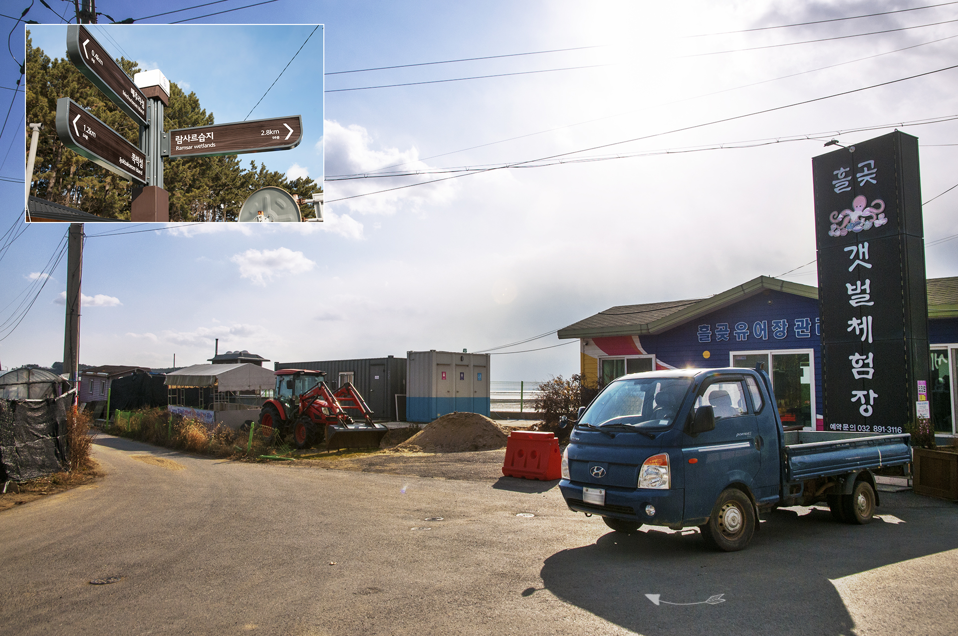 흘곶 갯벌체험장 삼거리에서 도착하면 오른쪽방향 람사르습지로 가면 된다.