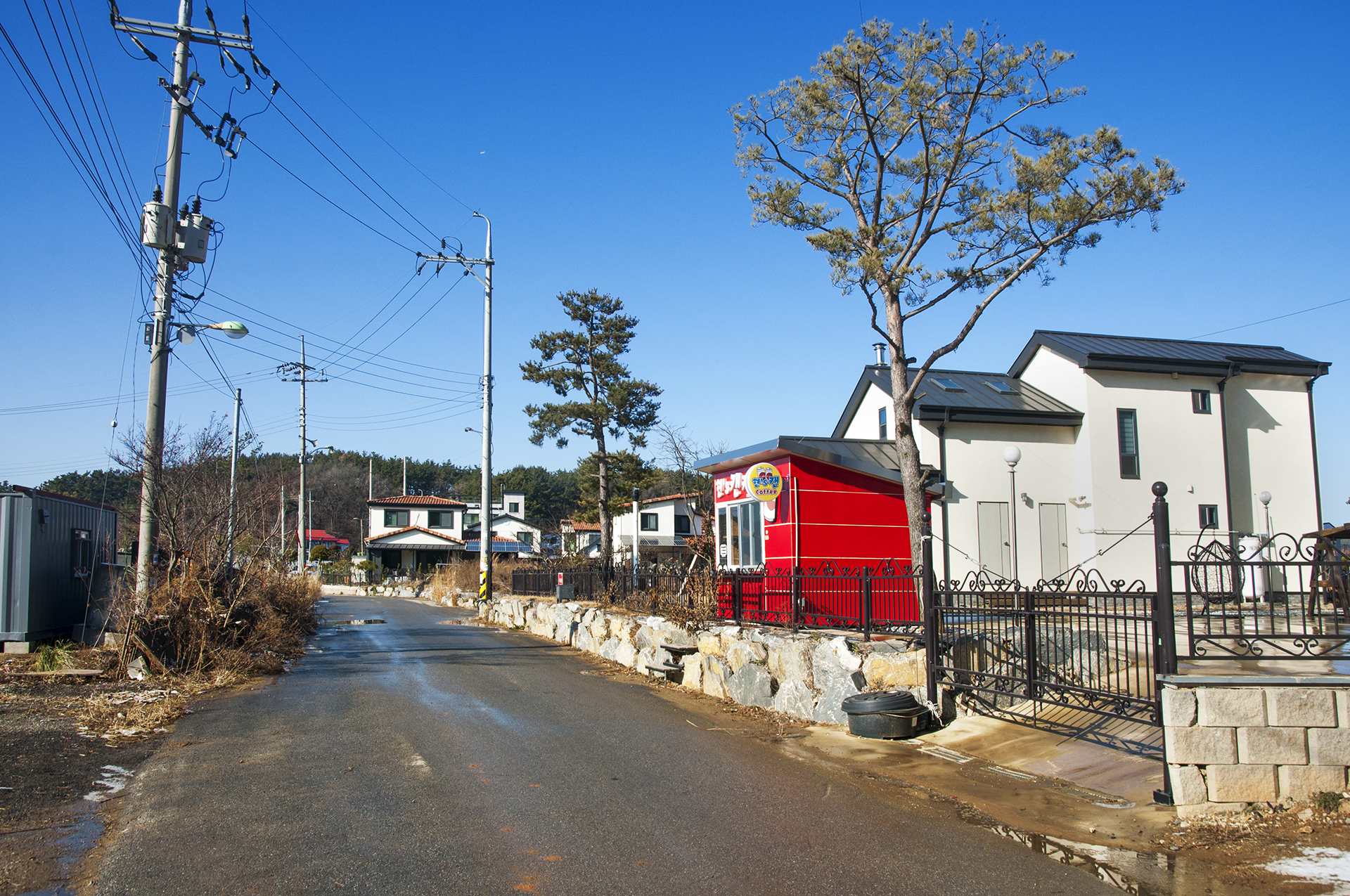 삼거리에서 우측 방향, 펜션들이 가득한 길로 1km만 가면 5코스 종점이다.