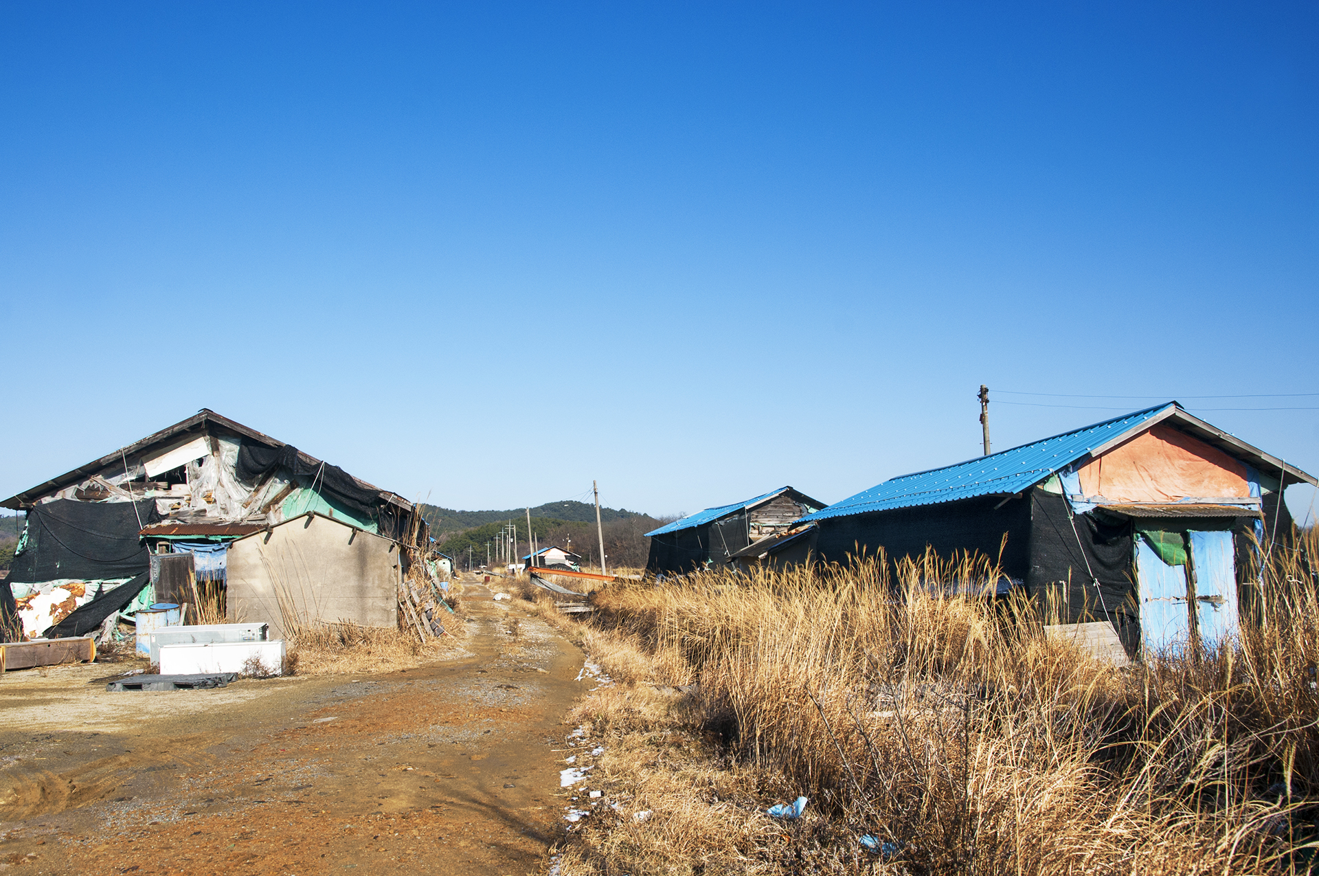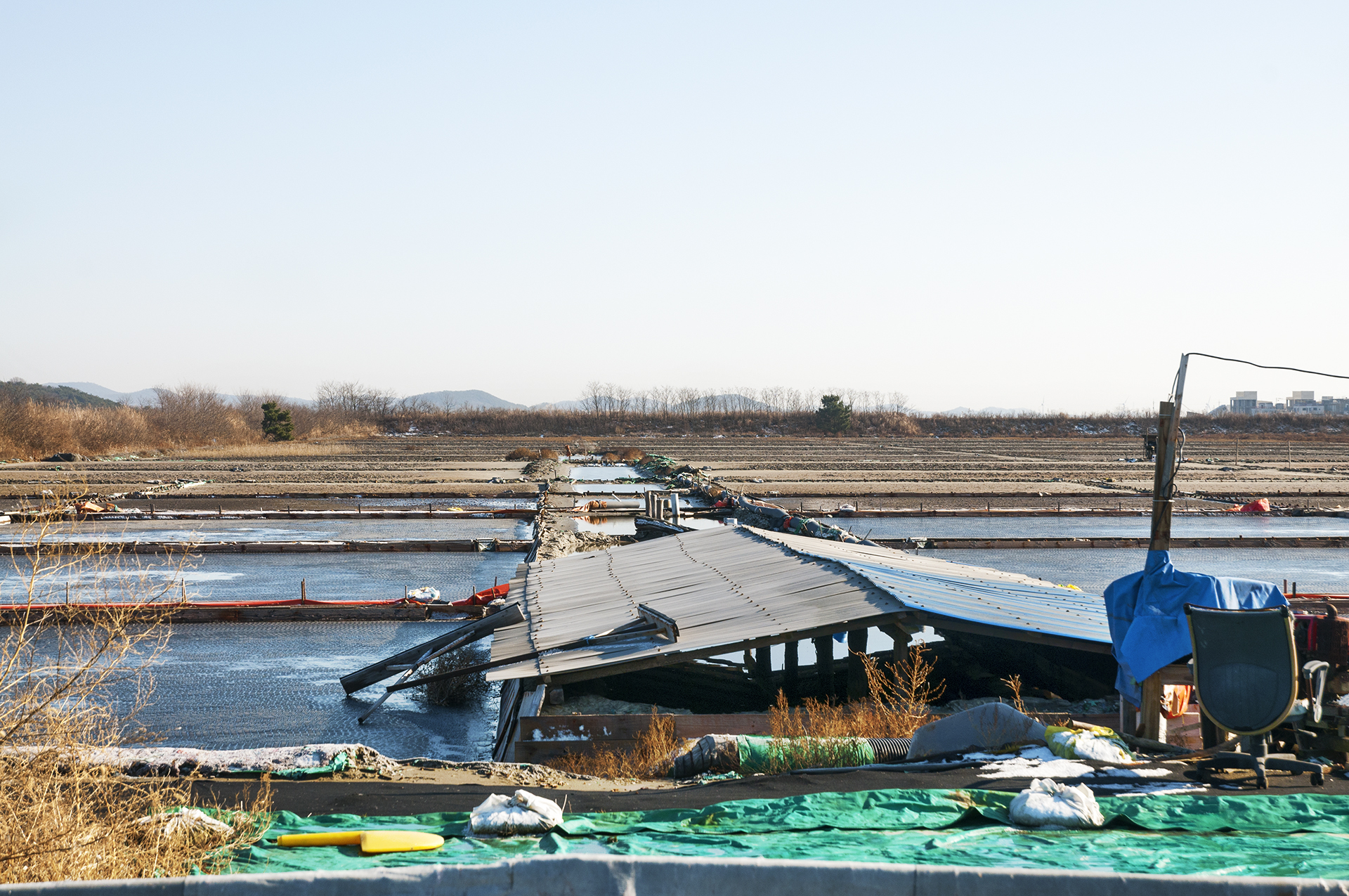 오전에 눈쌓였던 길은 황톳길로 변해 있었고, 길 양쪽으로는 오랜 세월을 지나온듯한 소금창고가 길게 늘어서 있다.