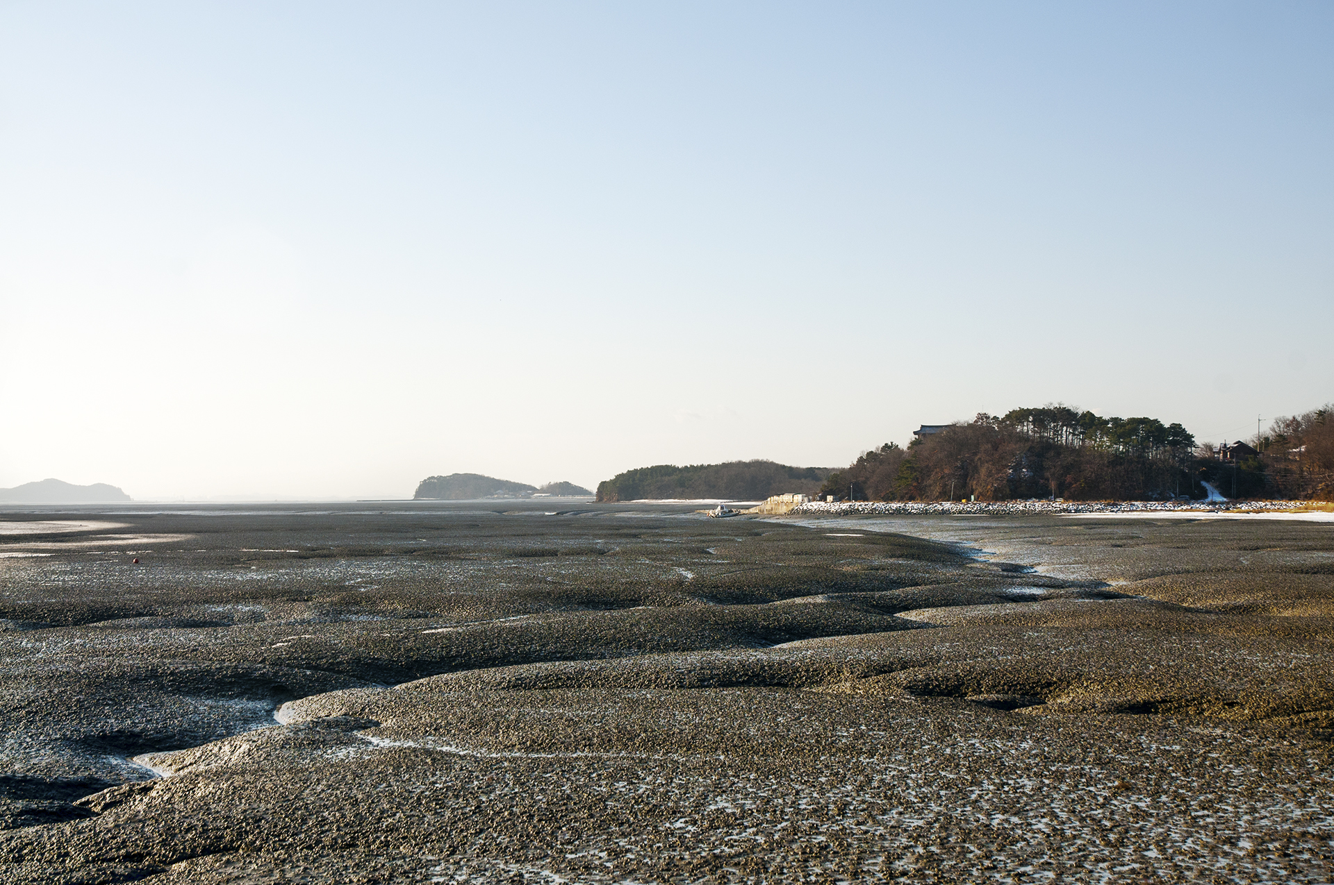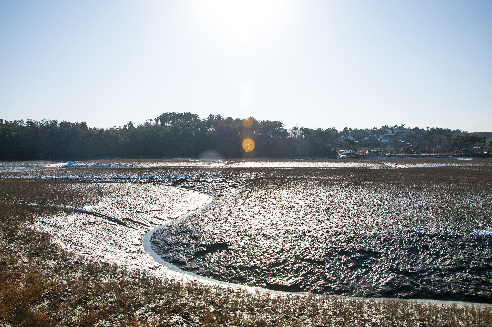아침에 꽁꽁 얼었던 갯벌을 찍었었는데 지금은 서서히 물이 들어오고 있는 중이다.