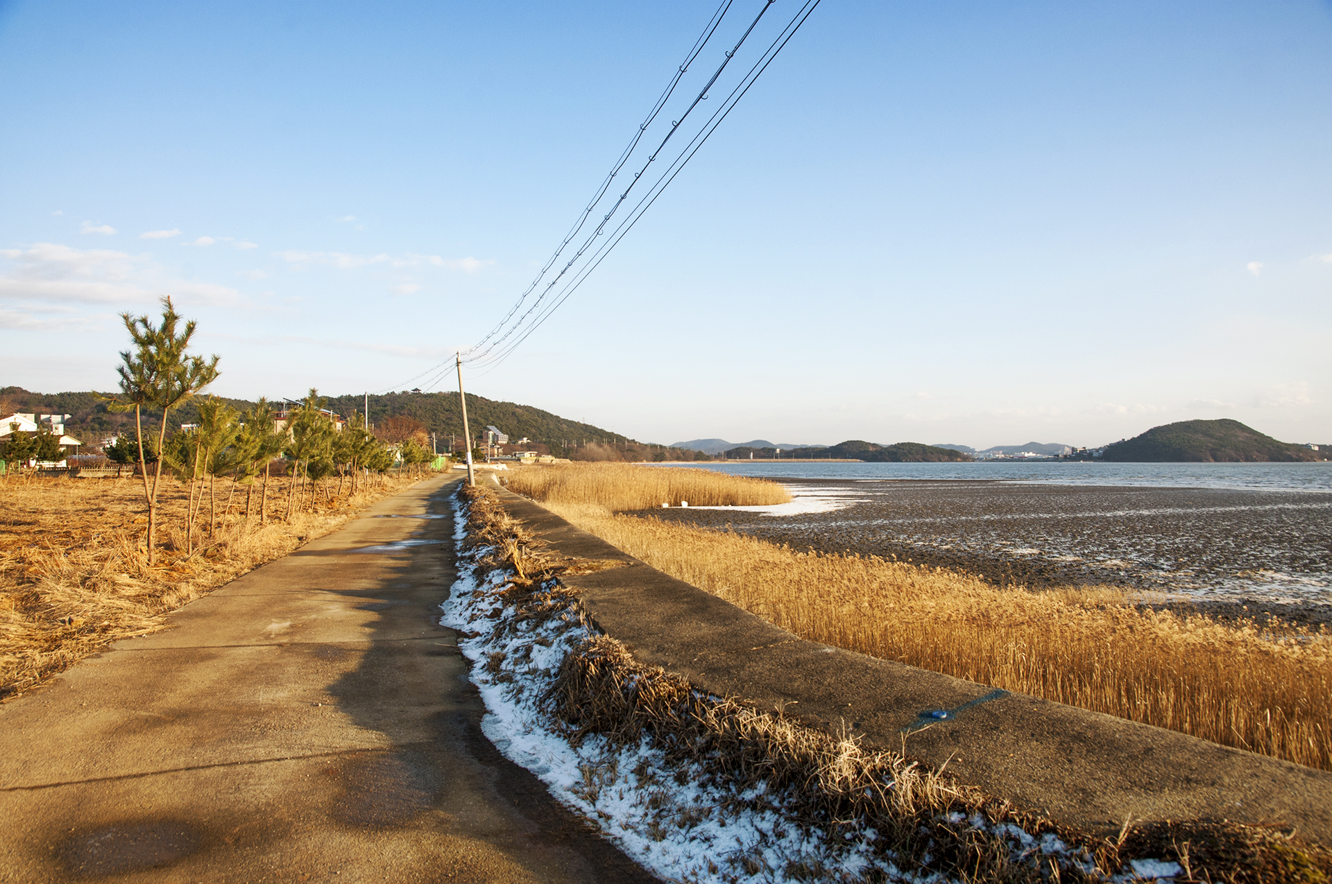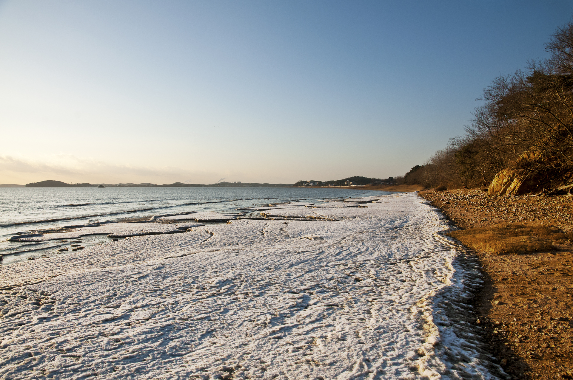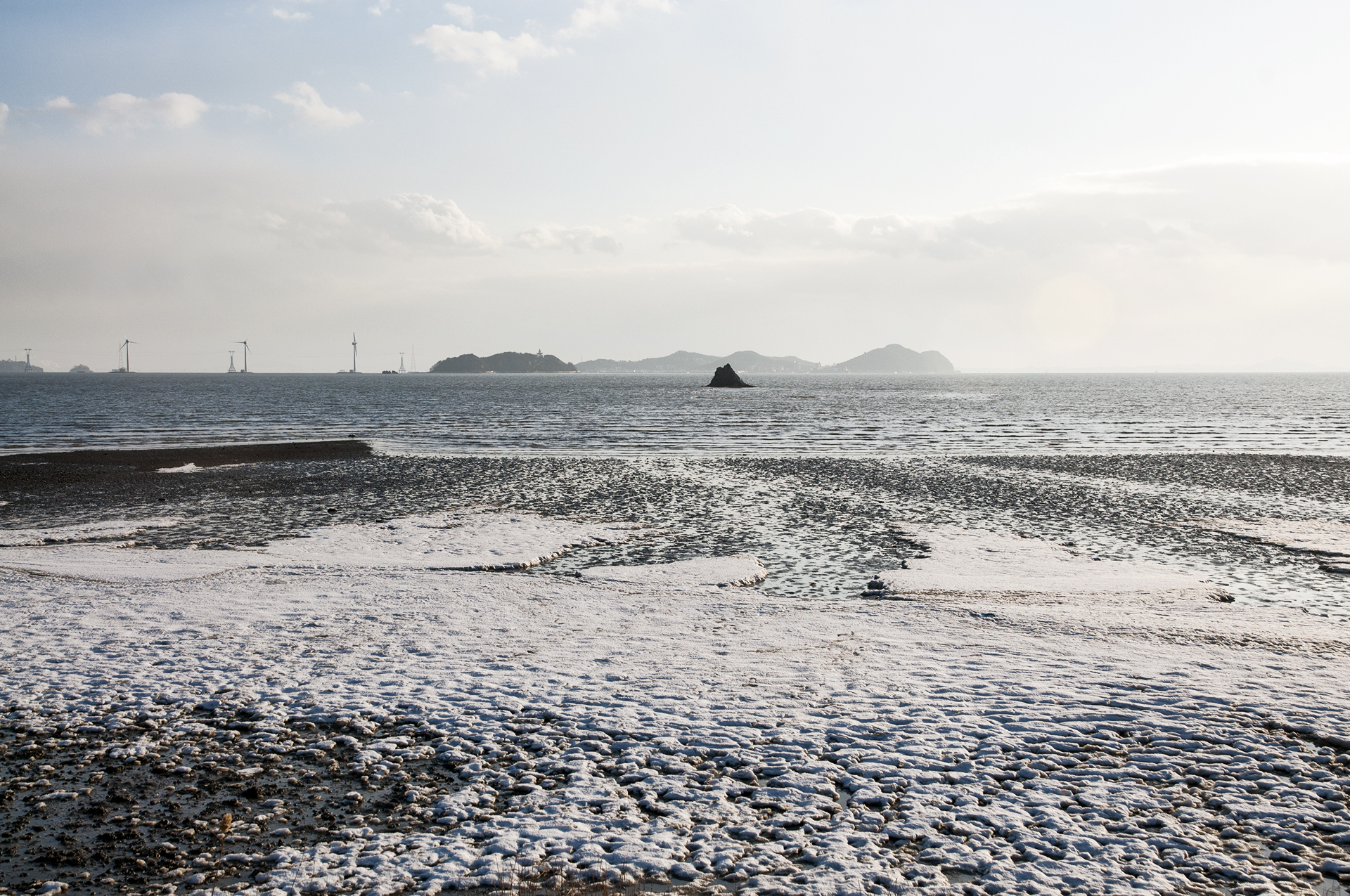 꽁꽁 얼었던 갯벌에는 아직도 눈이 그대로 남아 멋진 미술작품을 보는듯~