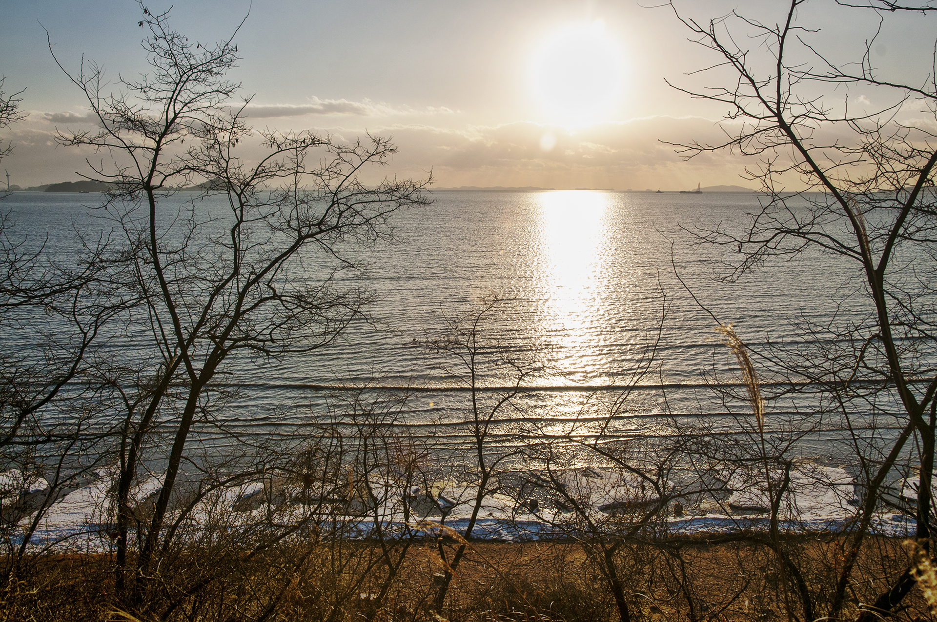 숲길에서 해안가로 내려갈수 있는 구간에서는 잠시 내려가 눈쌓인 바다풍경을 담아본다.