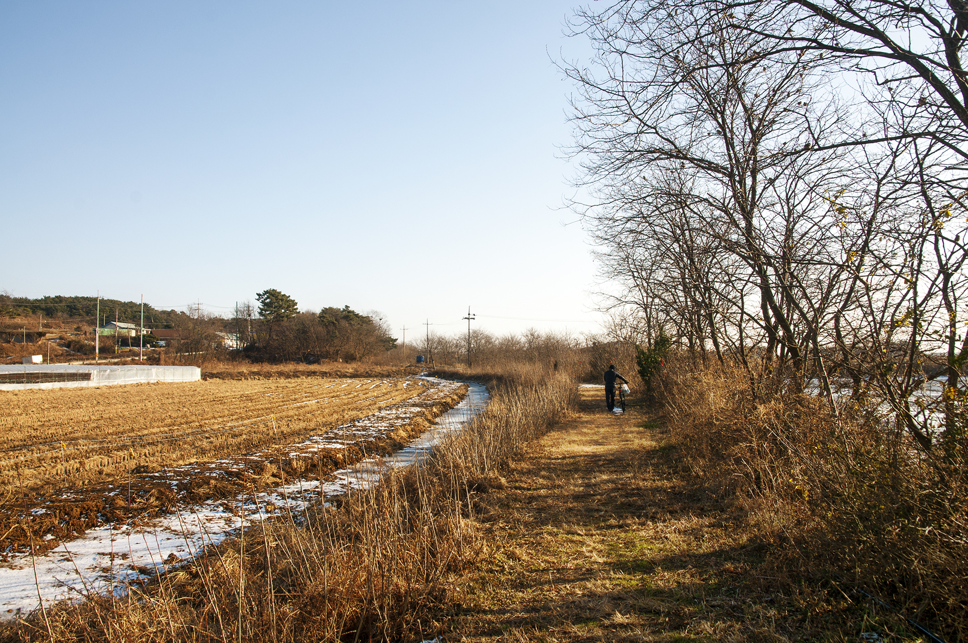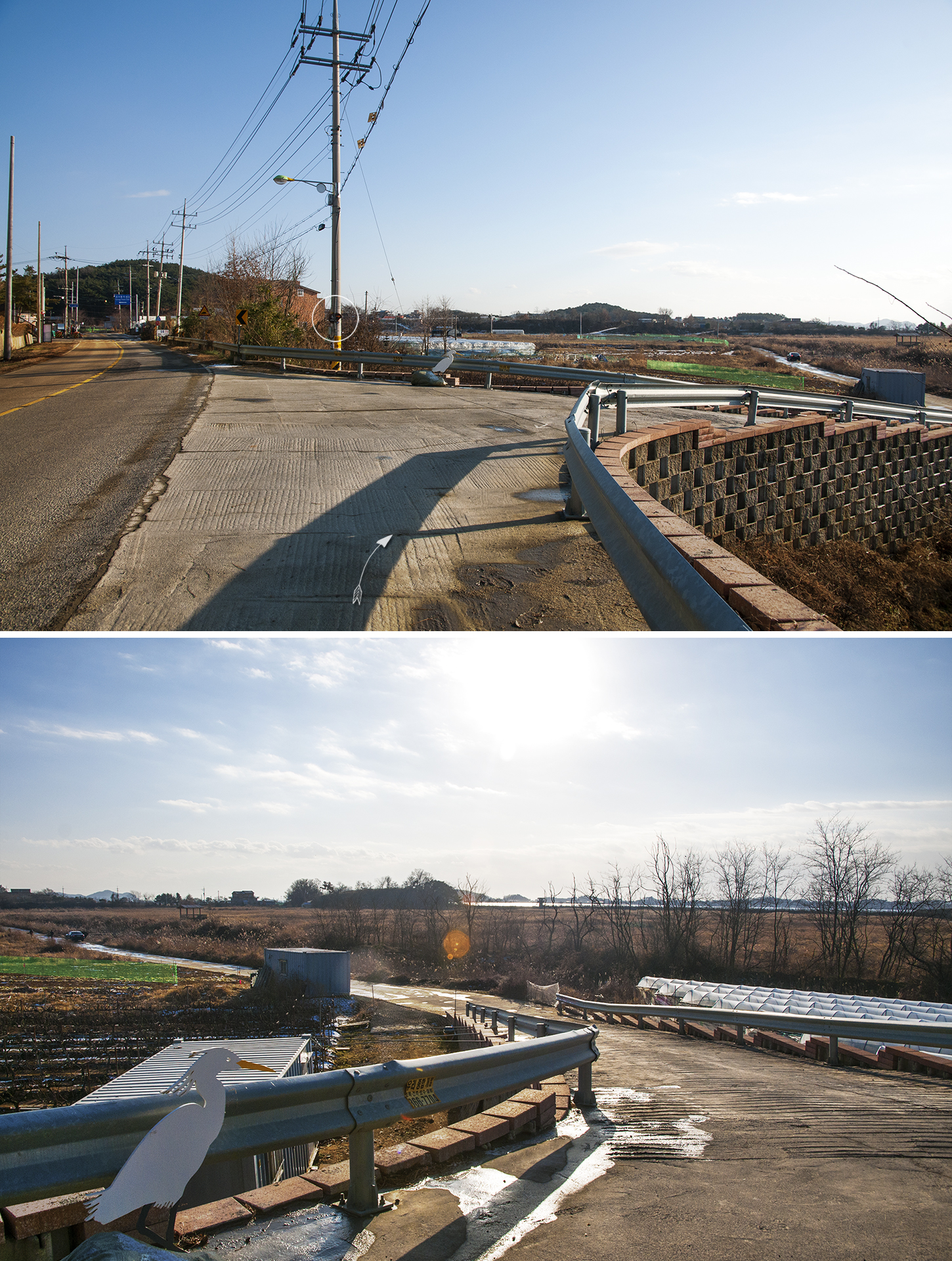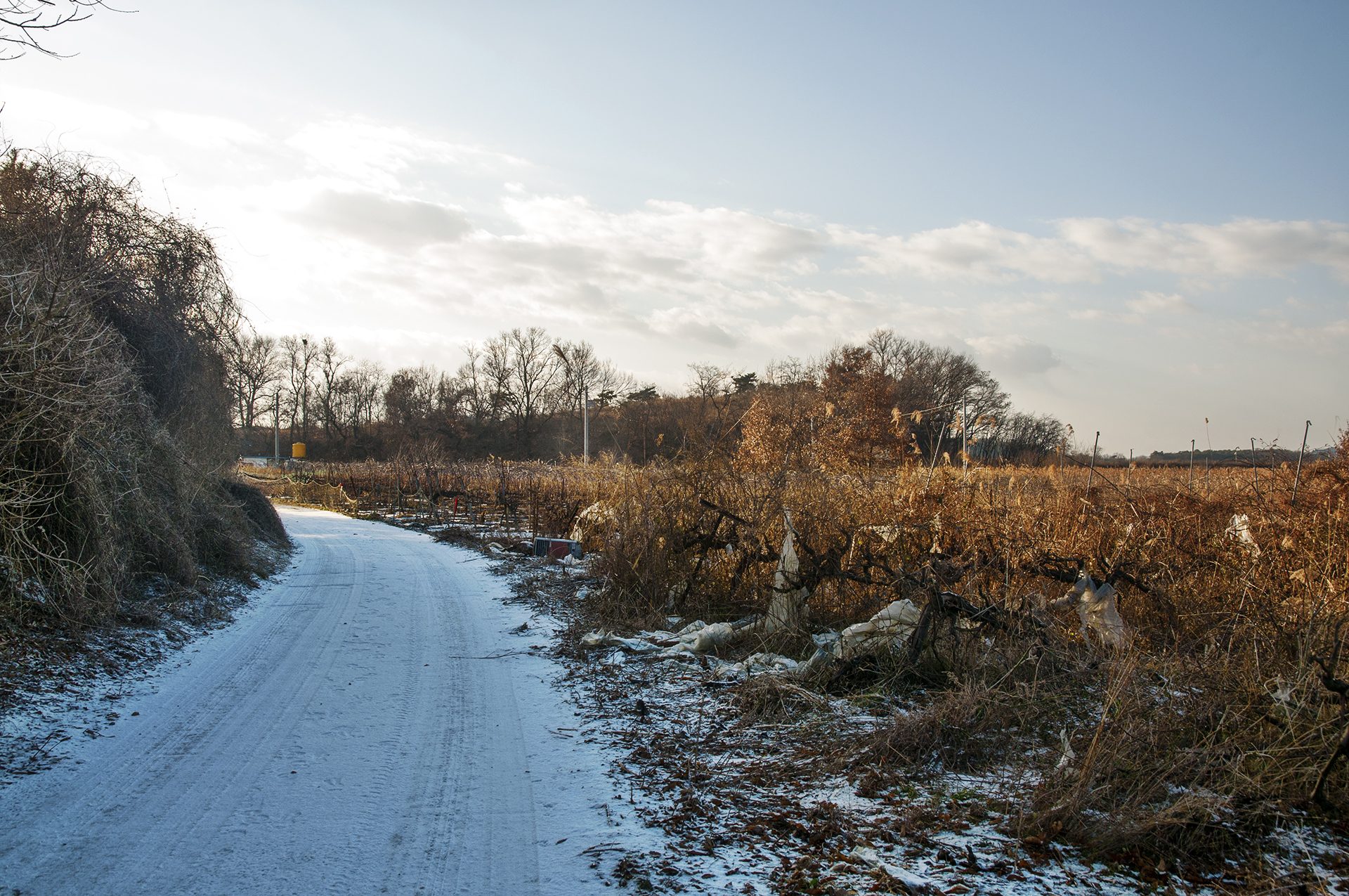 아침에 역방향으로 이 길을 지났었는데 아직도 눈이 녹지 않았다.