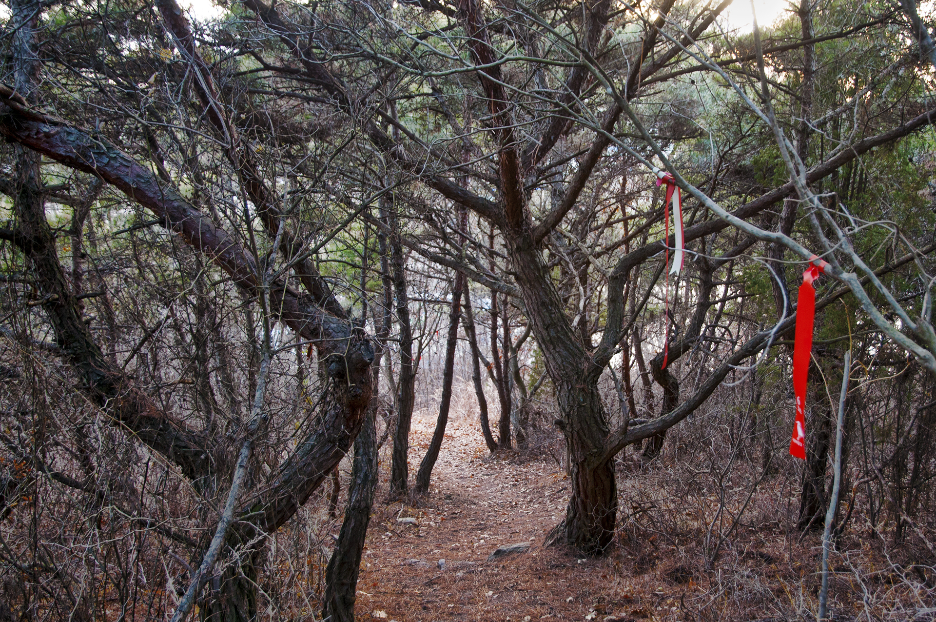 중간에 산으로 올라가는 길에 리본이 안내되어 있으니 밀물때는 이곳으로 가야 한다.