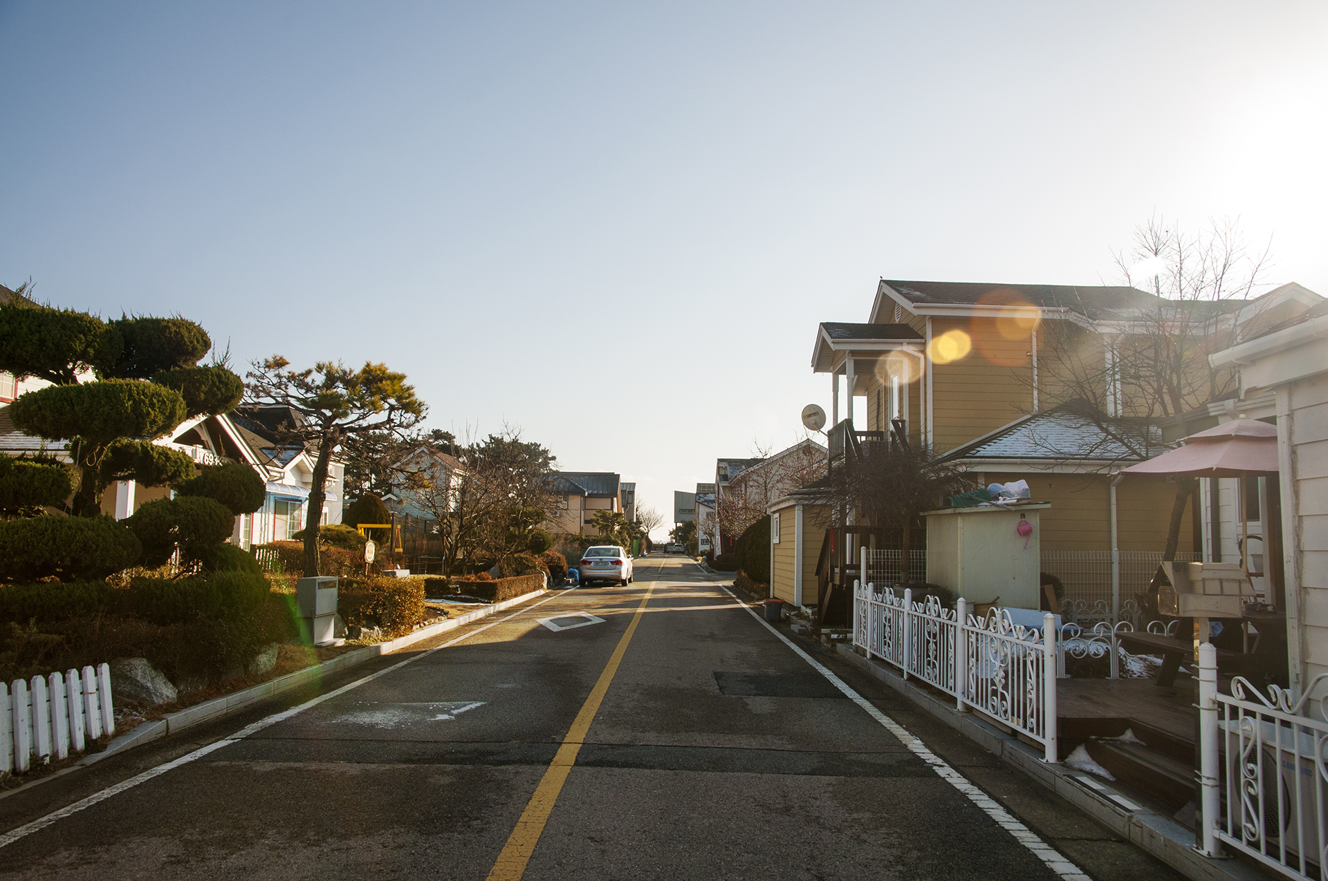 온통 펜션뿐인 이 거리를 직진으로 끝까지 걷는 중