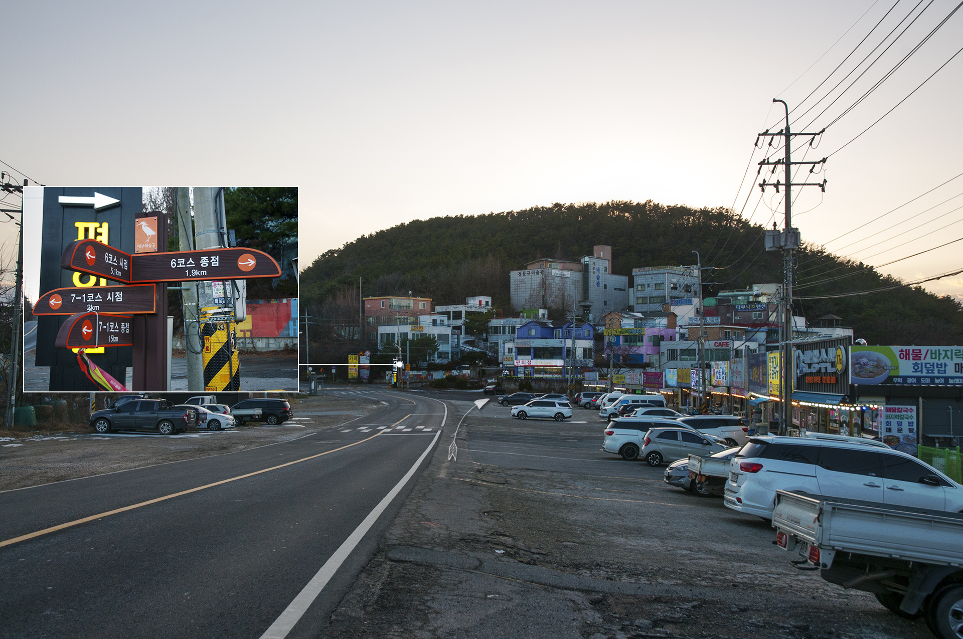 사진 메타정보를 보니 일몰을 담았던 해안에서 여기까지 빠른걸음으로 12분이 걸렸다.