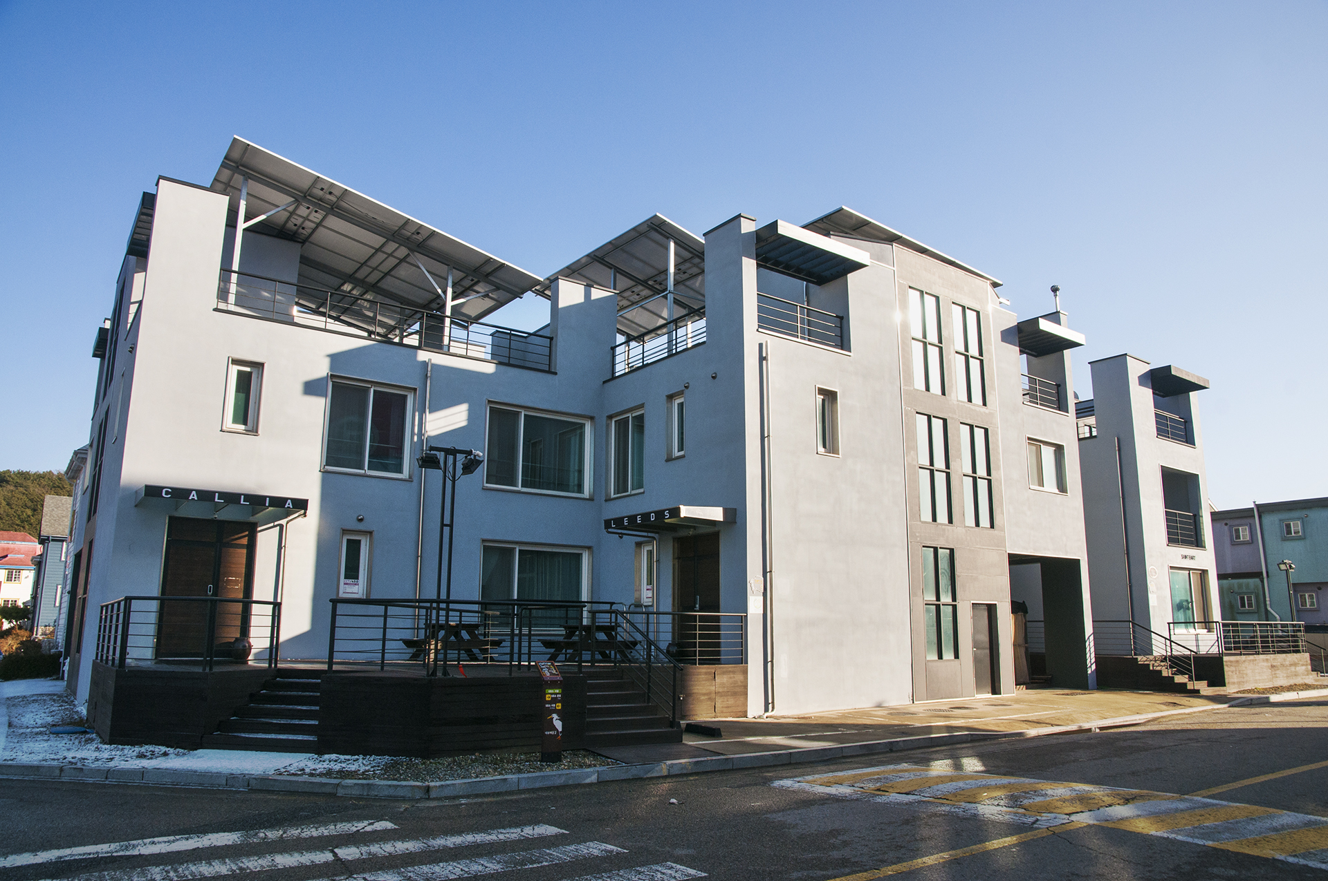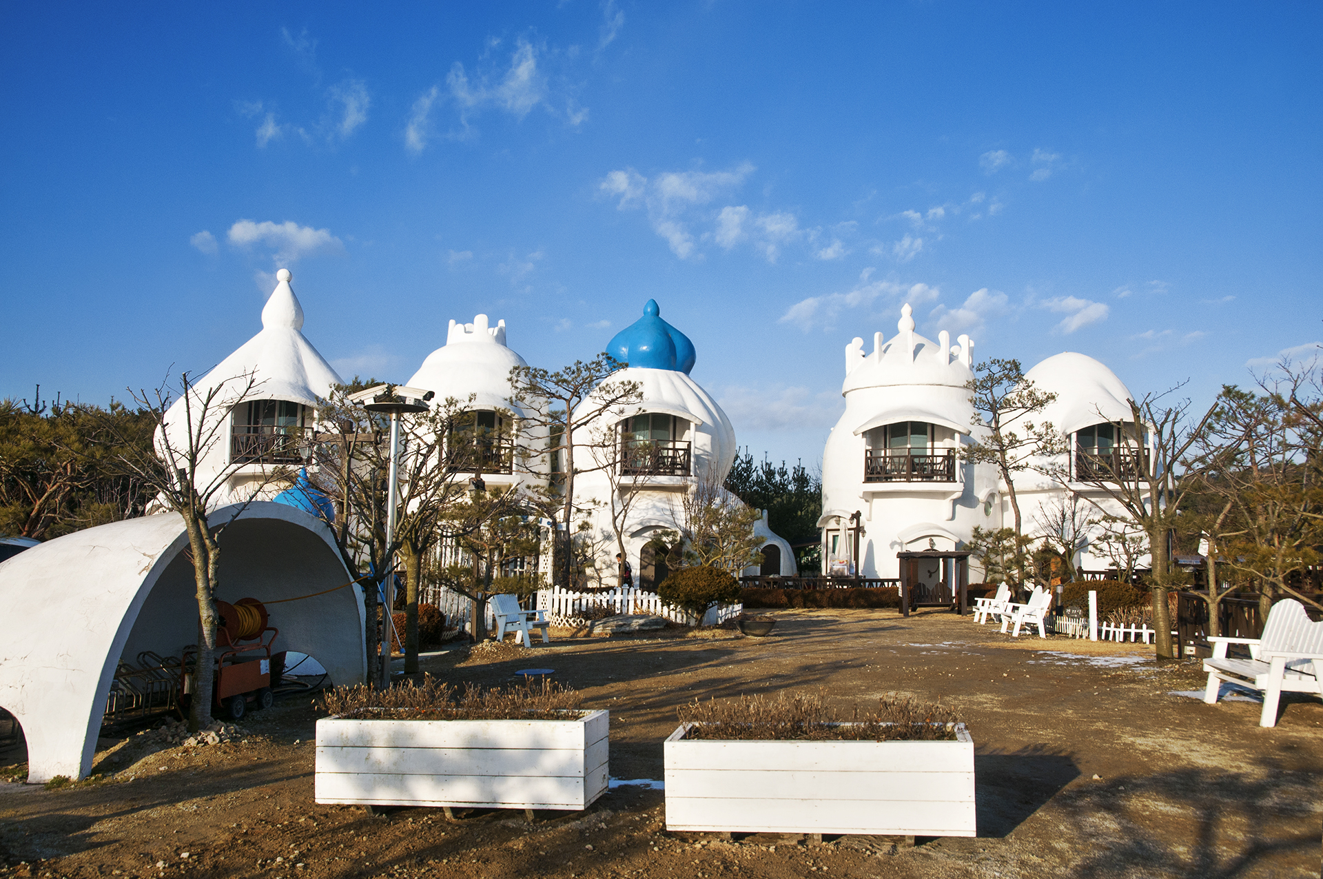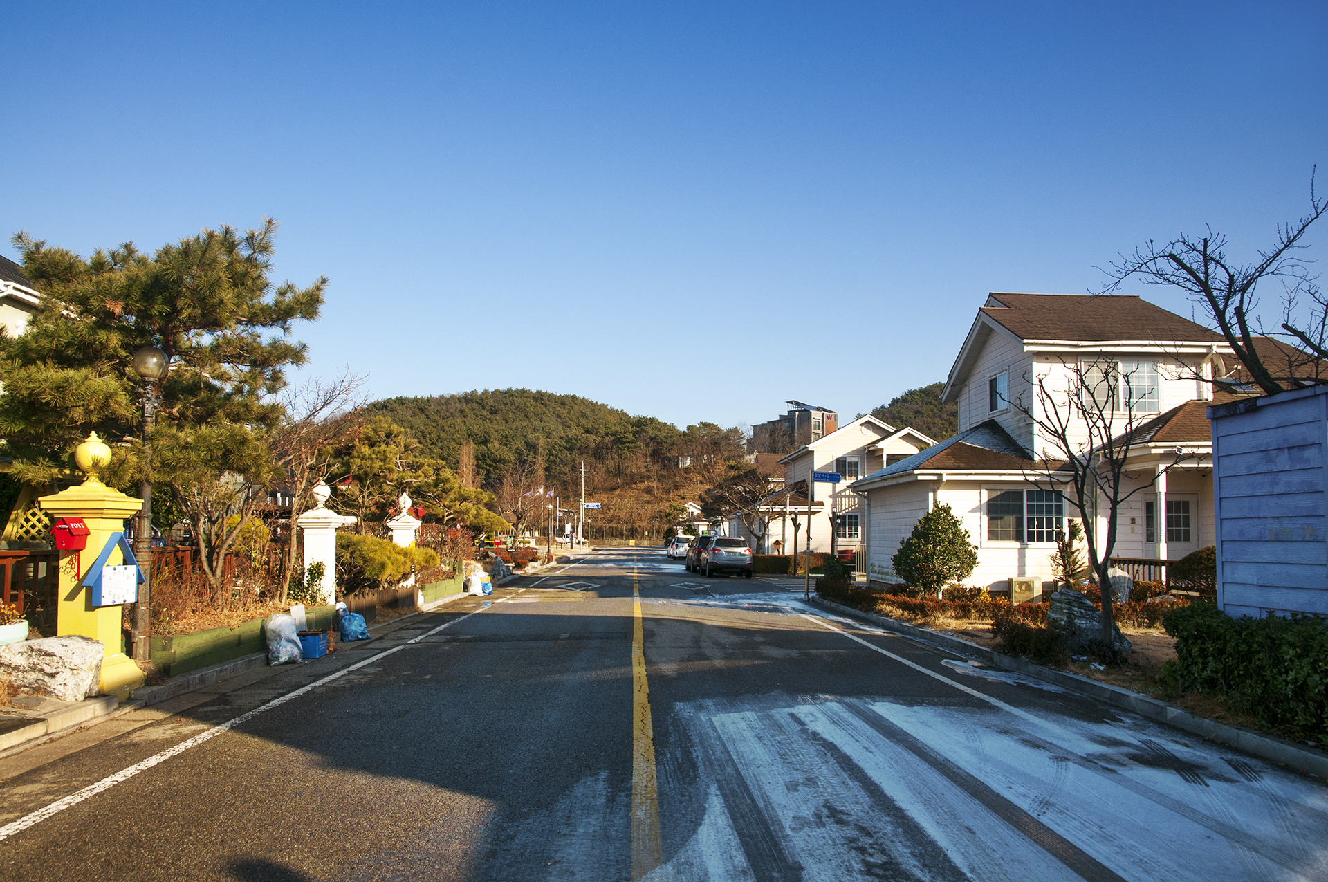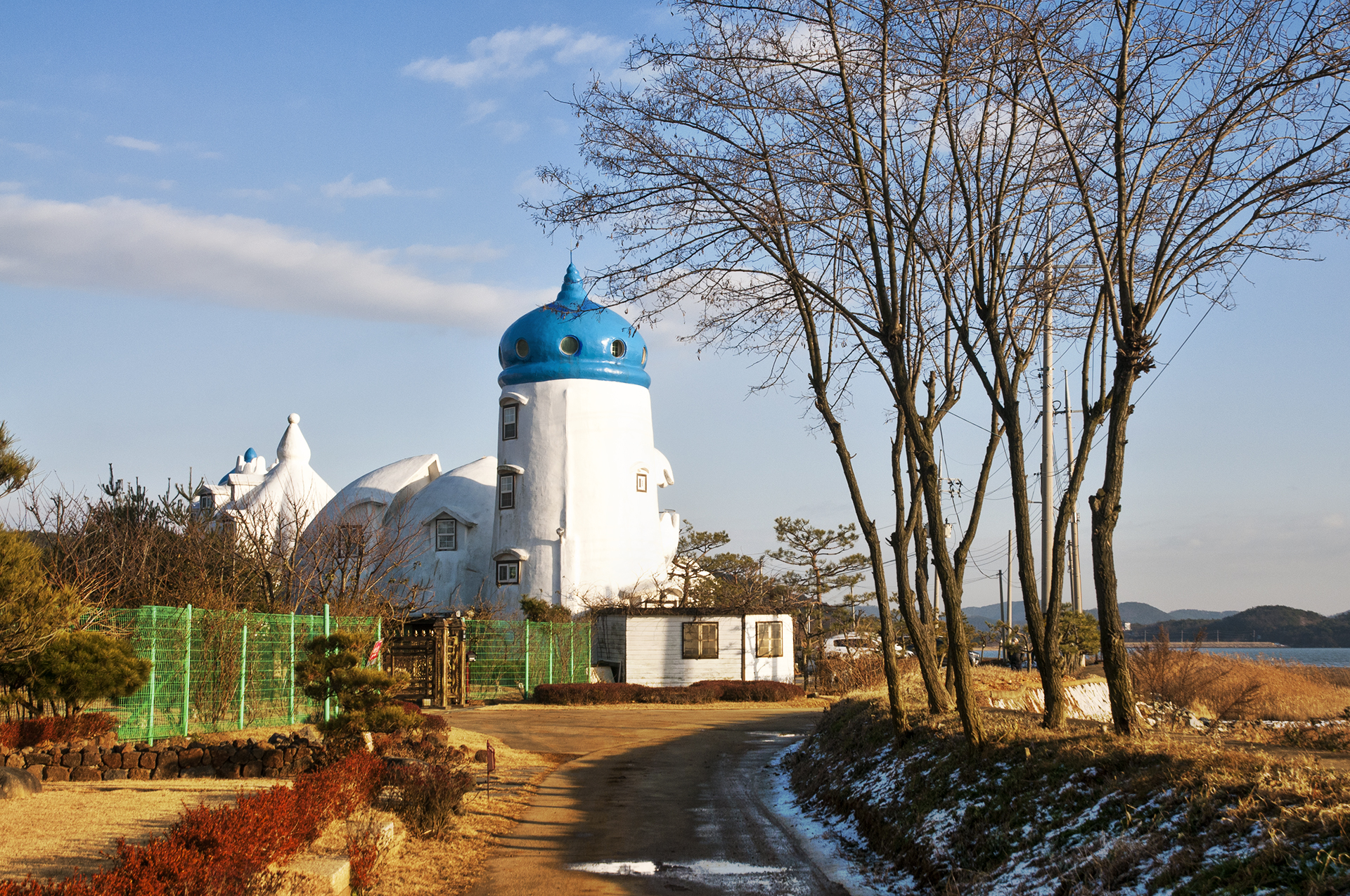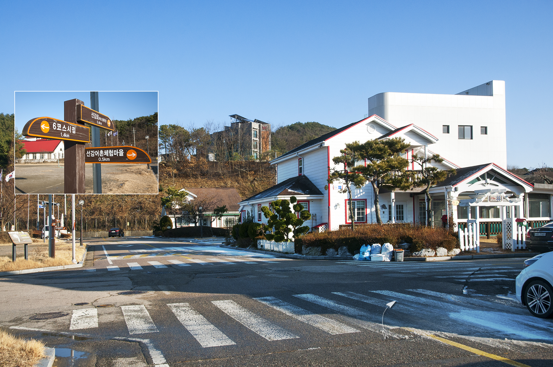 화창한 겨울날 하얀 이 펜션이 유독 더 눈에 들어온다.