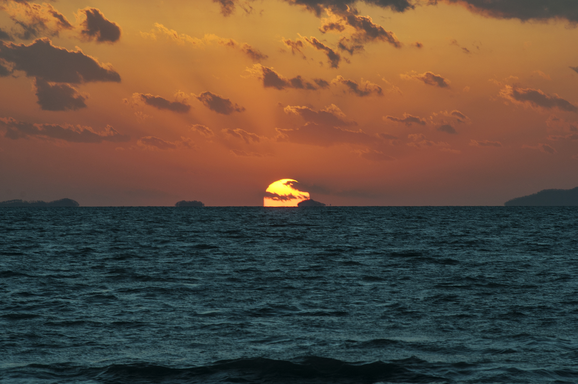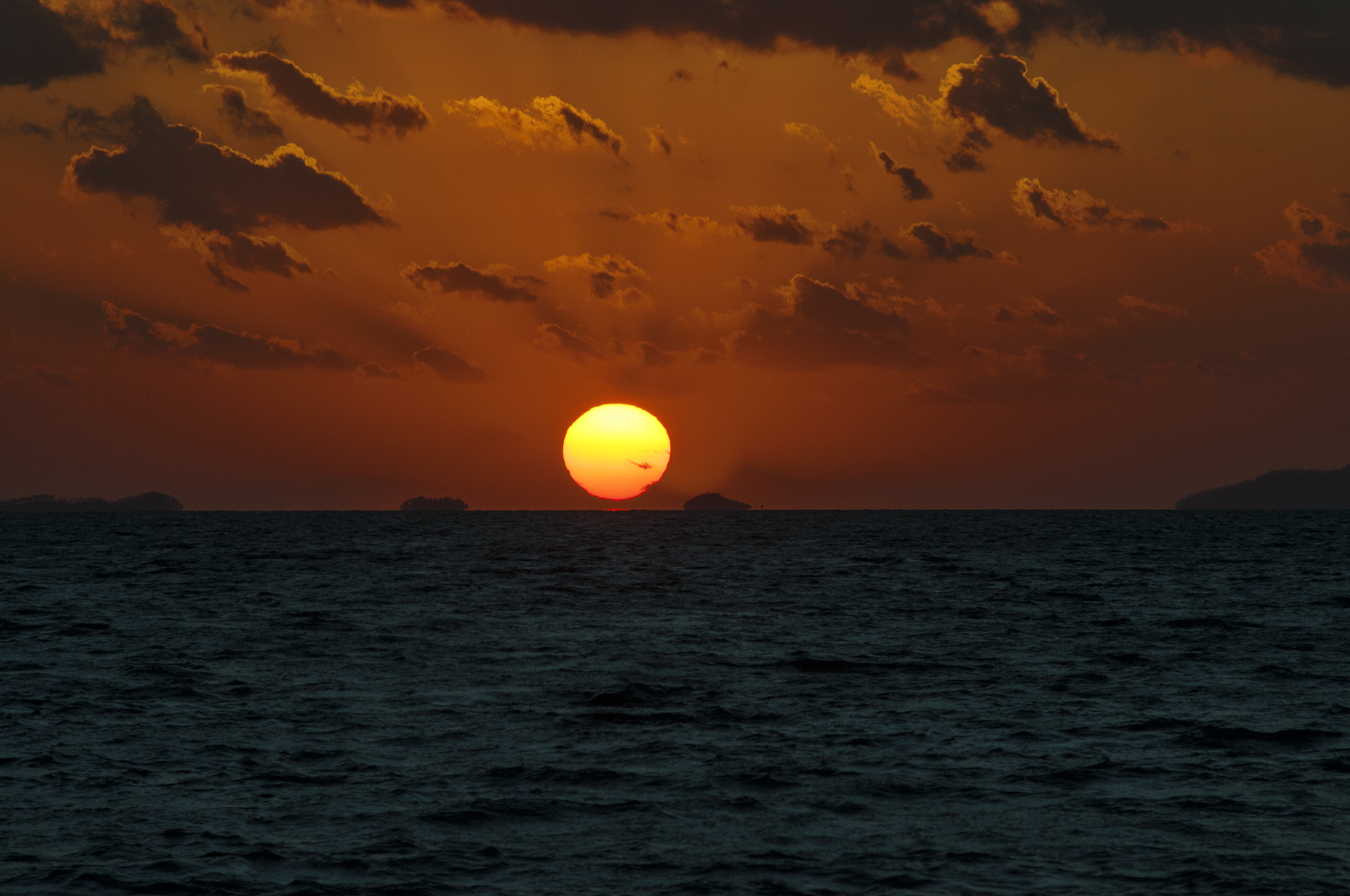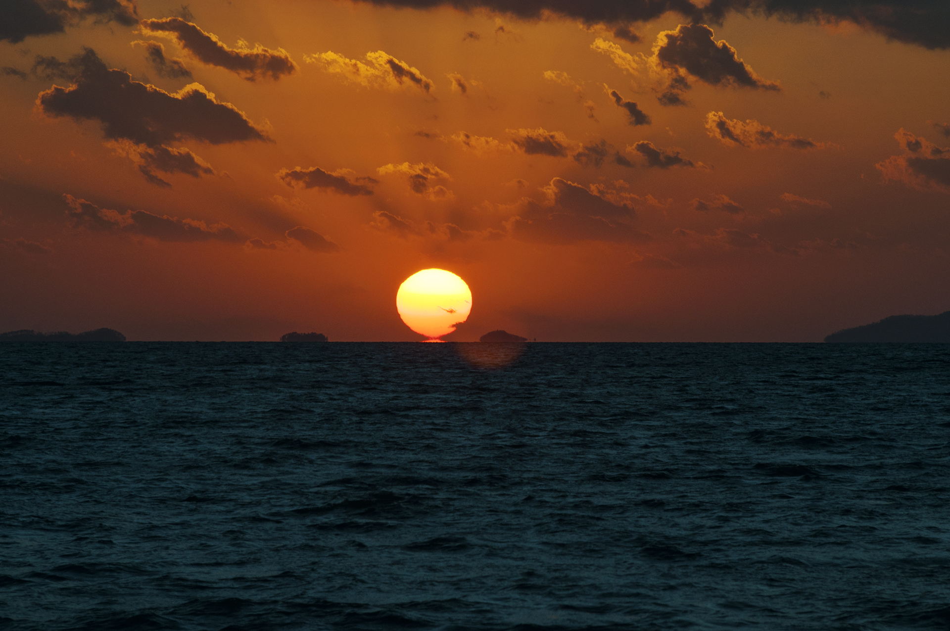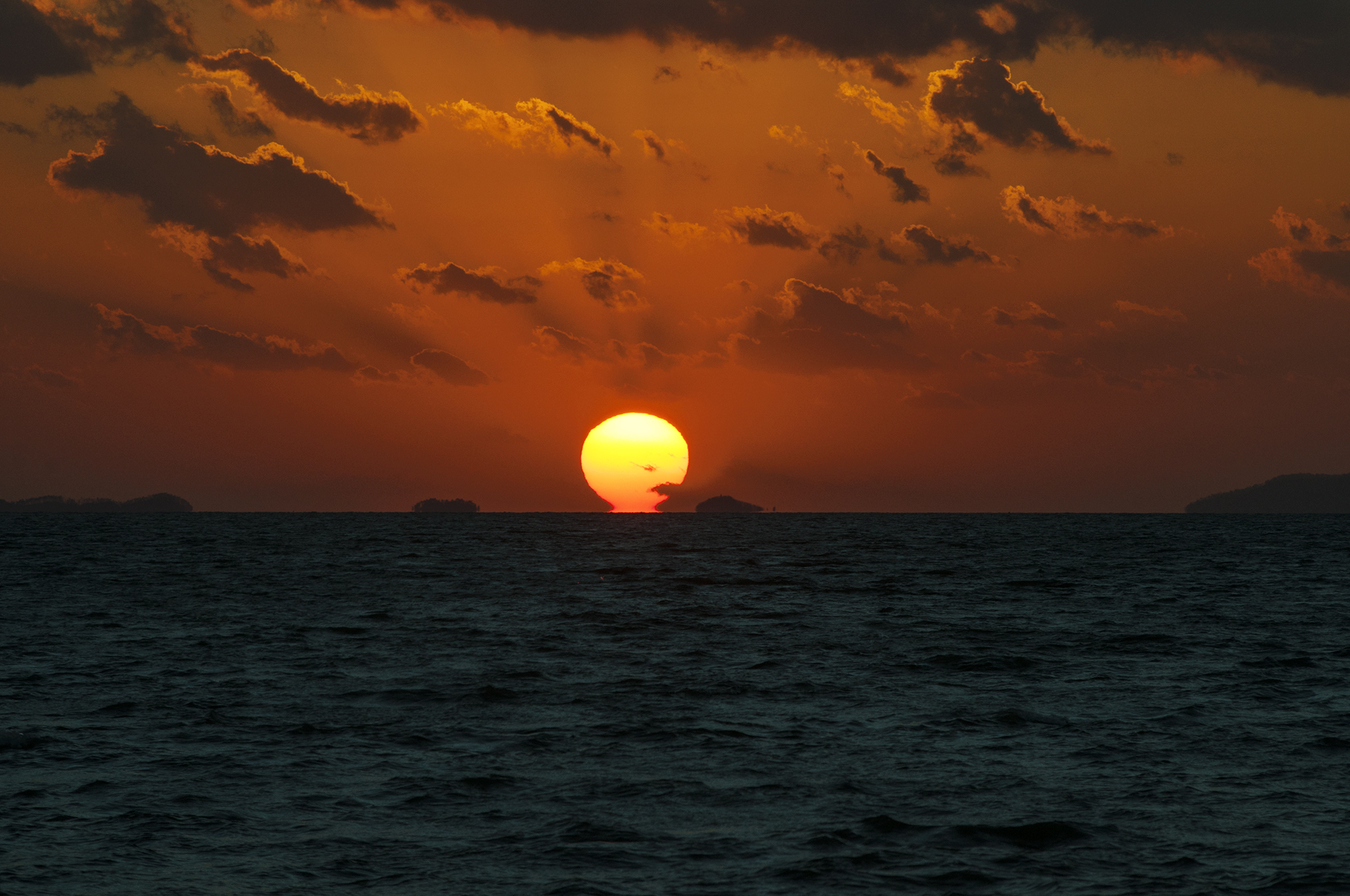 해는 순식간에 내려앉아 수평선 너머로 내려가고 만다.