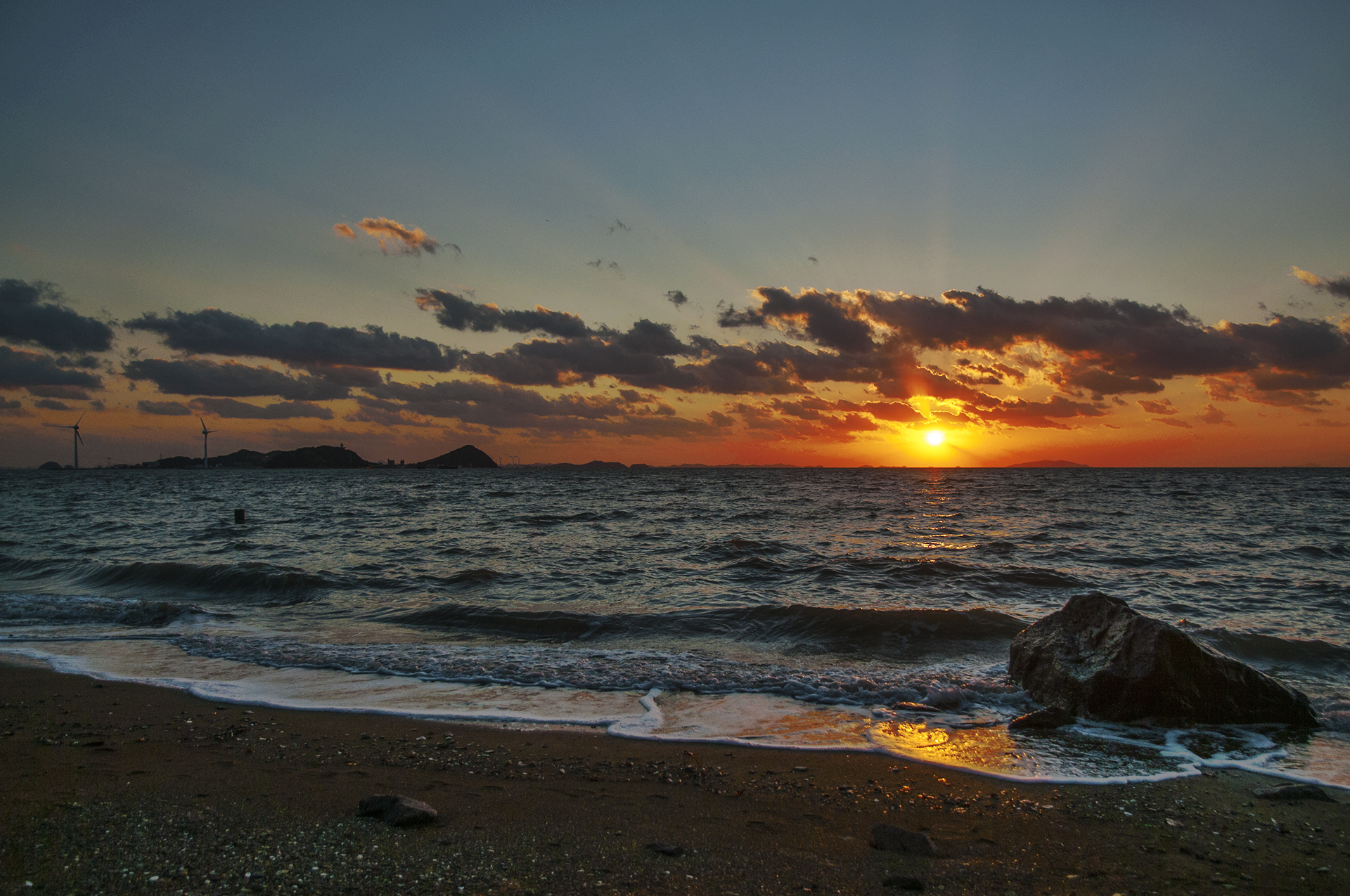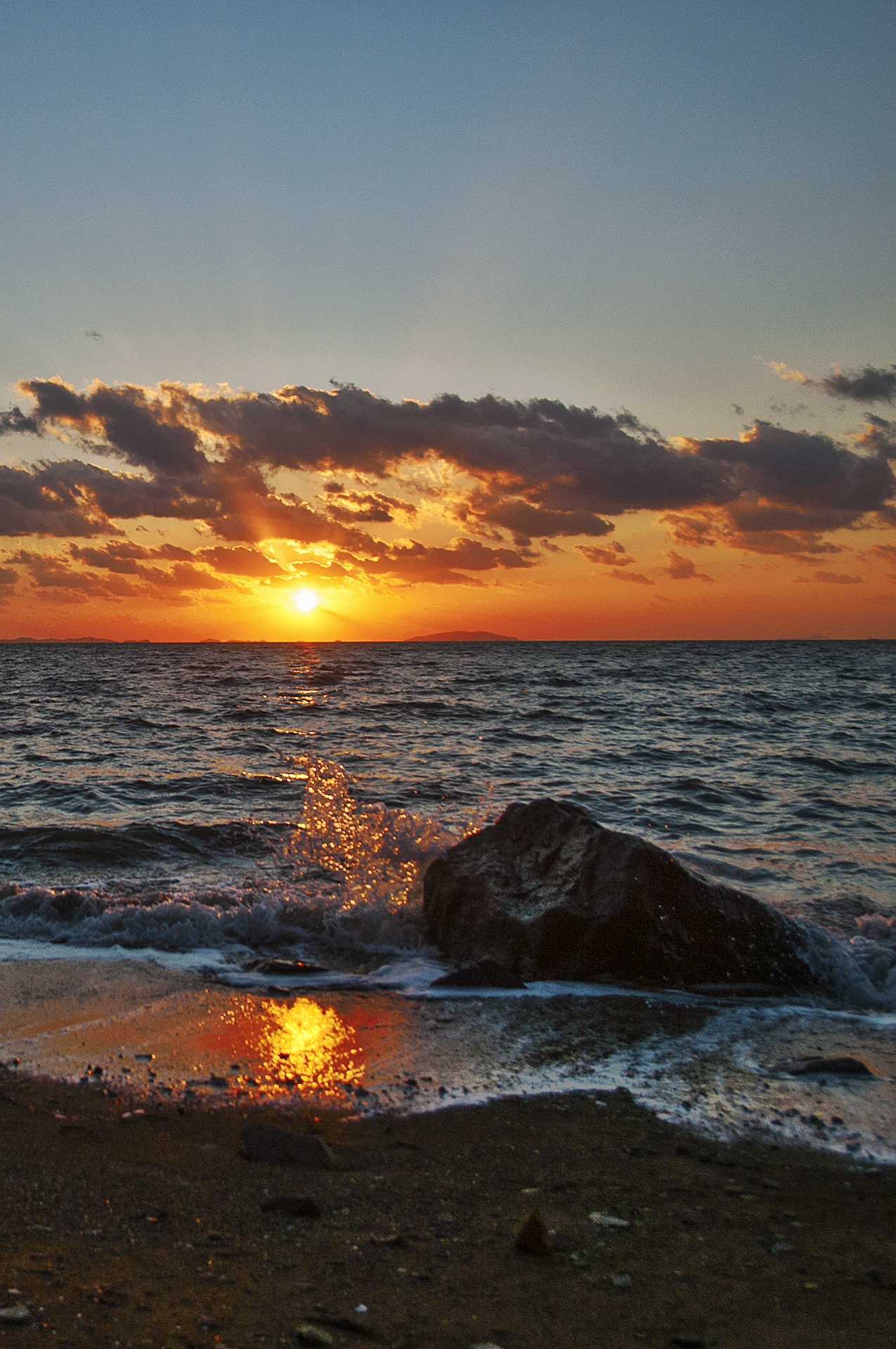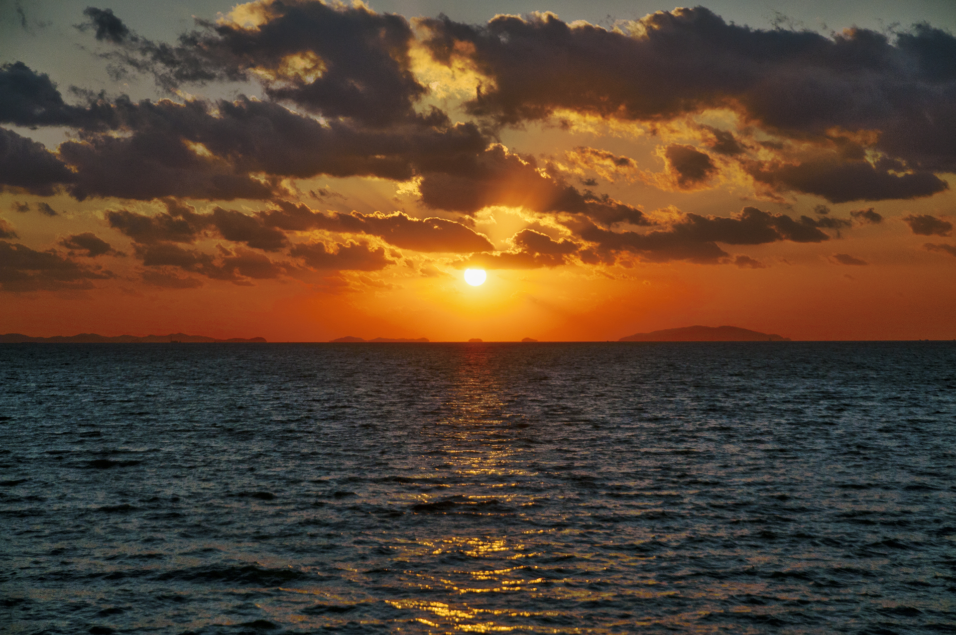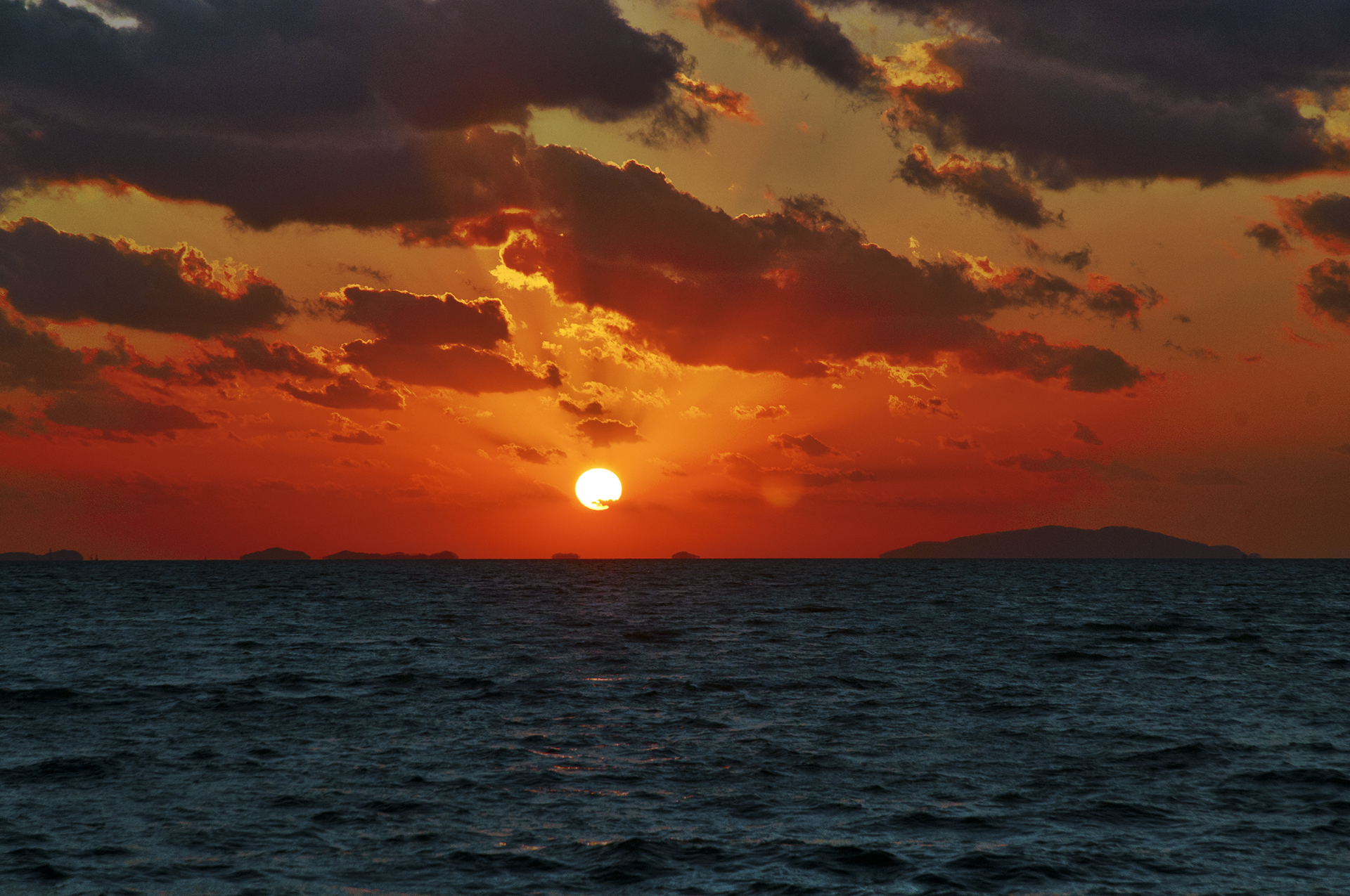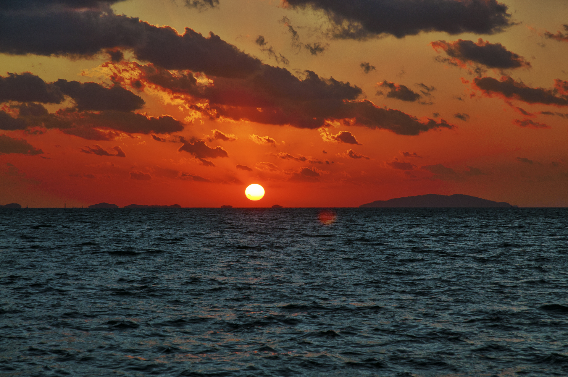 해는 순식간에 내려앉아 수평선 너머로 내려가고 만다.