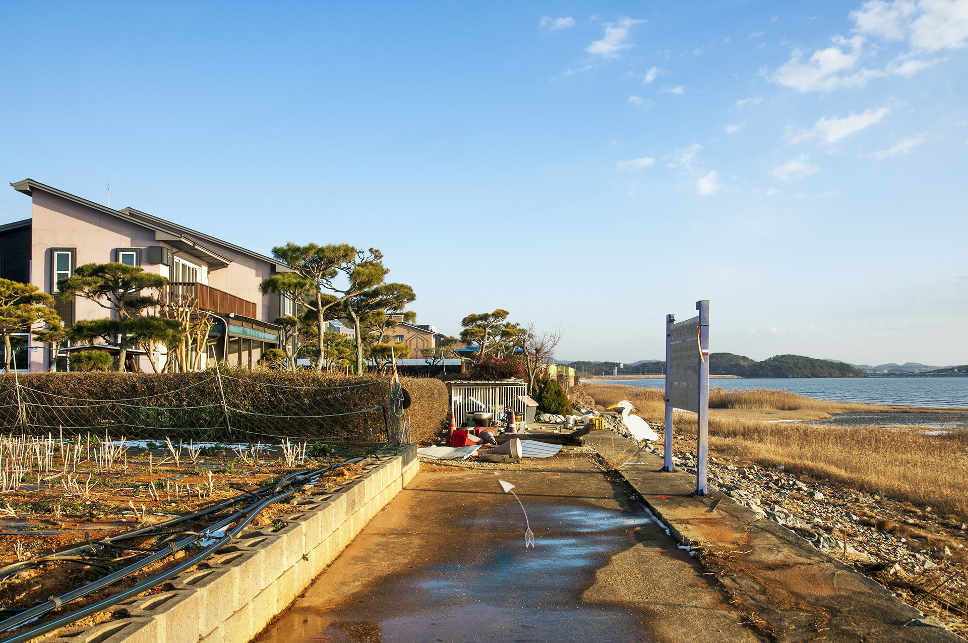 아침엔 바람이 불어 춥다는 느낌에 뚝방길이 아닌 선감어촌체험마을을 지나는 길을 걸었었다.