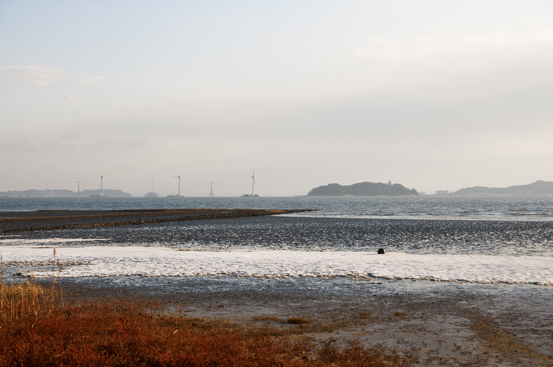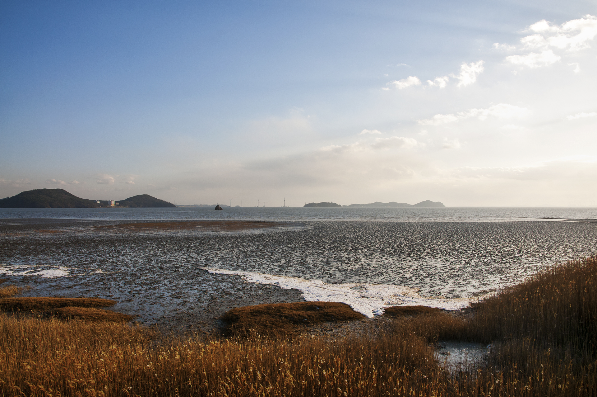 갯벌에 바닷물이 밀려 들어오면서 청량한 파도소리를 만들어 준다.