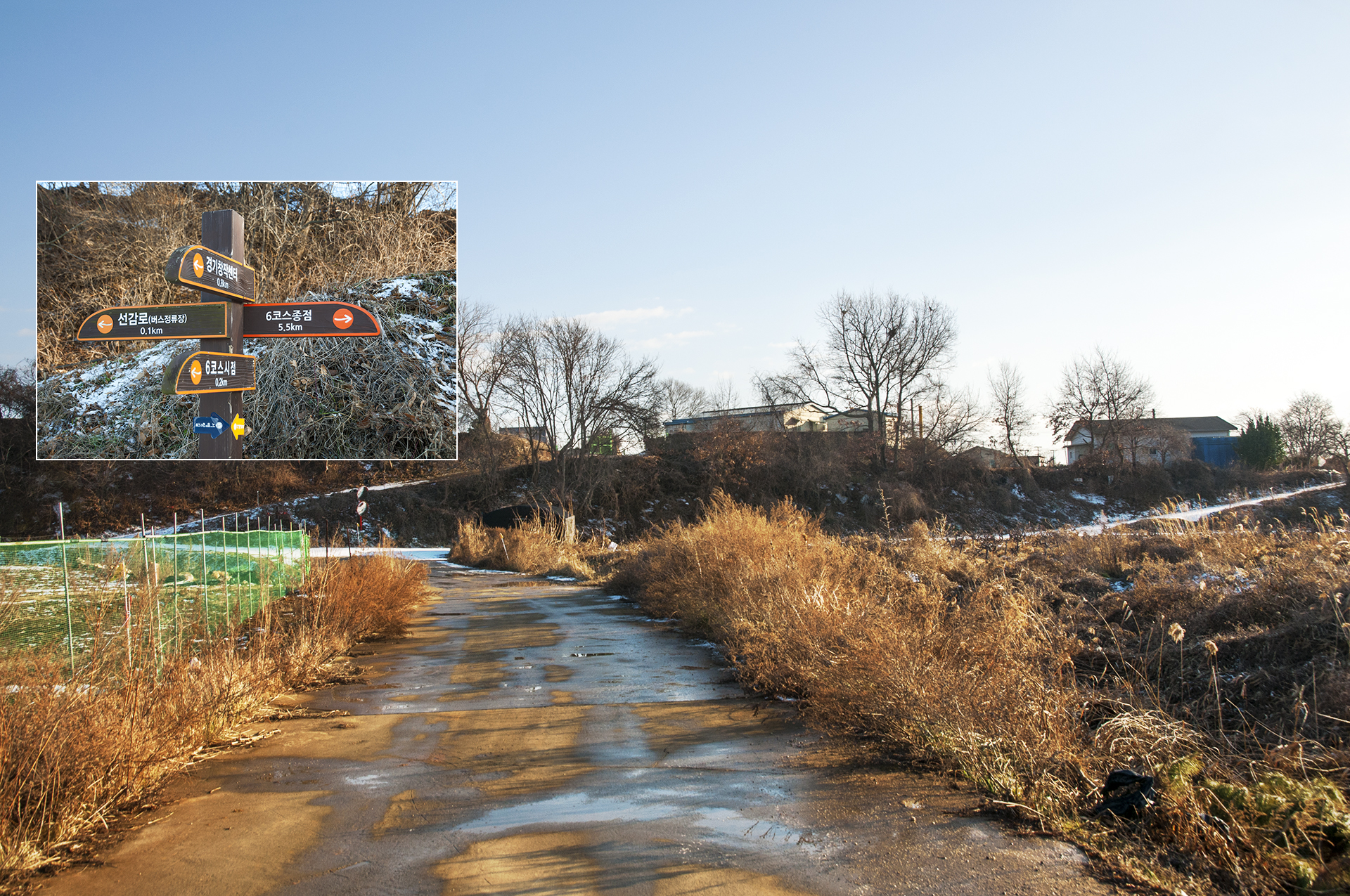 지금까지 뚝방길을 걸어왔고, 이곳에서 경기도청소년수련원 방향으로 가면 된다.