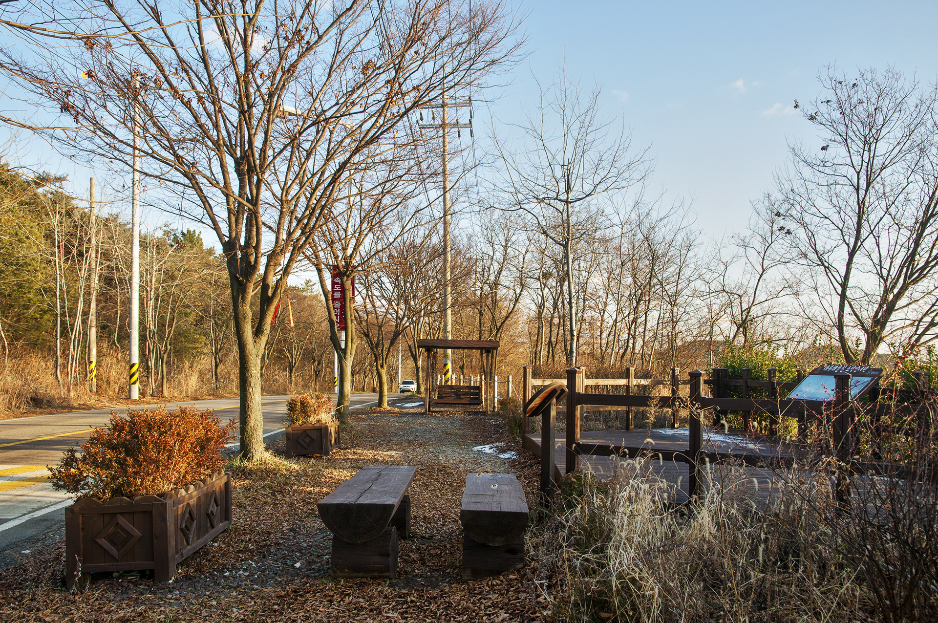 그리 힘들지 않은 숲길을 5~7분 정도 걸으면 도로로 나가게 되어 있다.