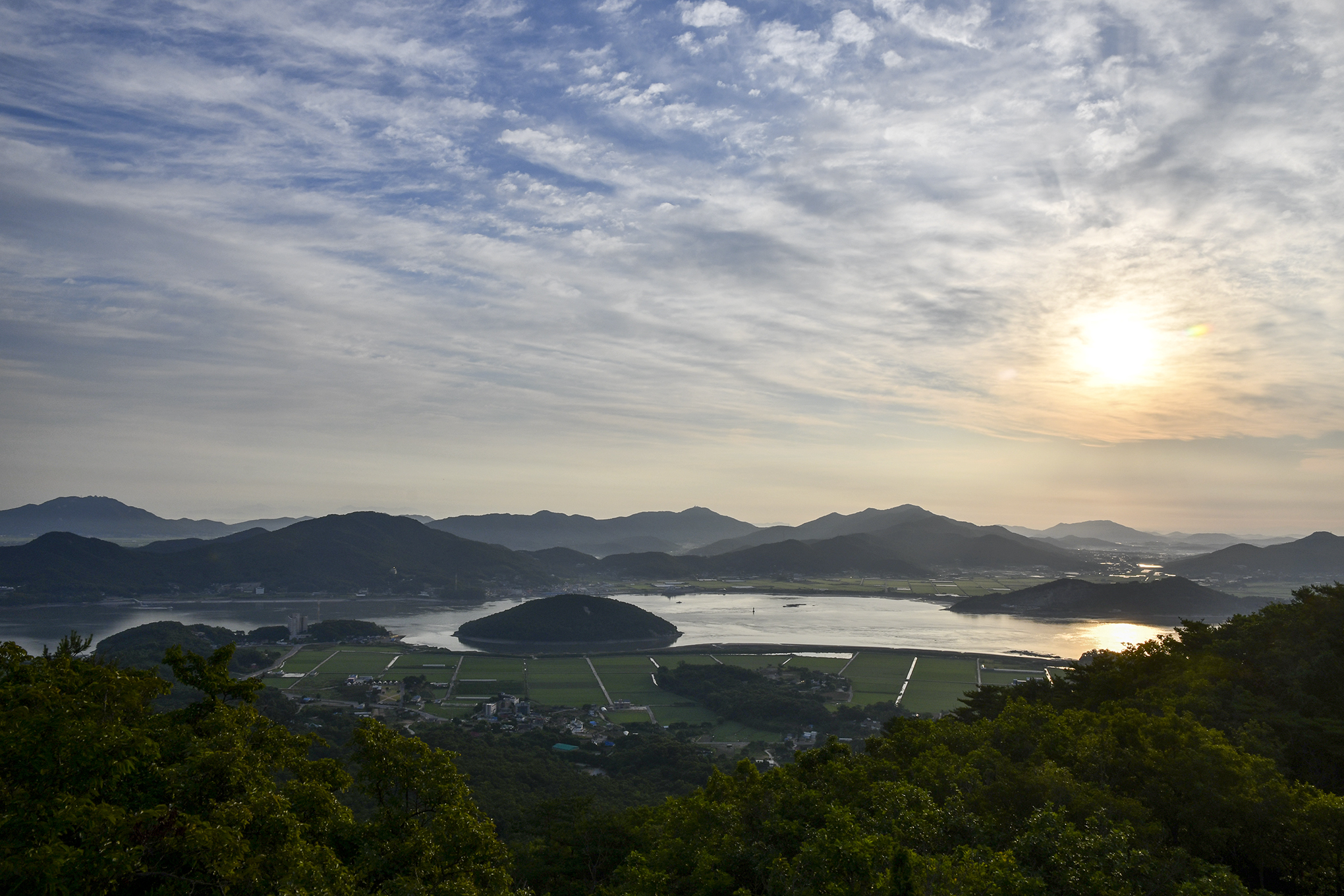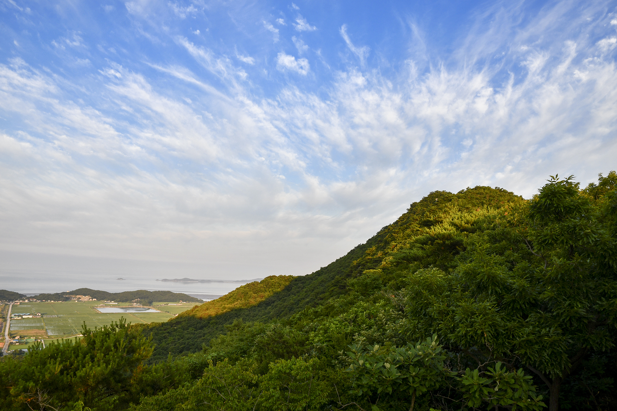 갯벌과 논이 한눈에 내려다 보이고, 수많은 산과 바다가 파노라마로 펼쳐진다.