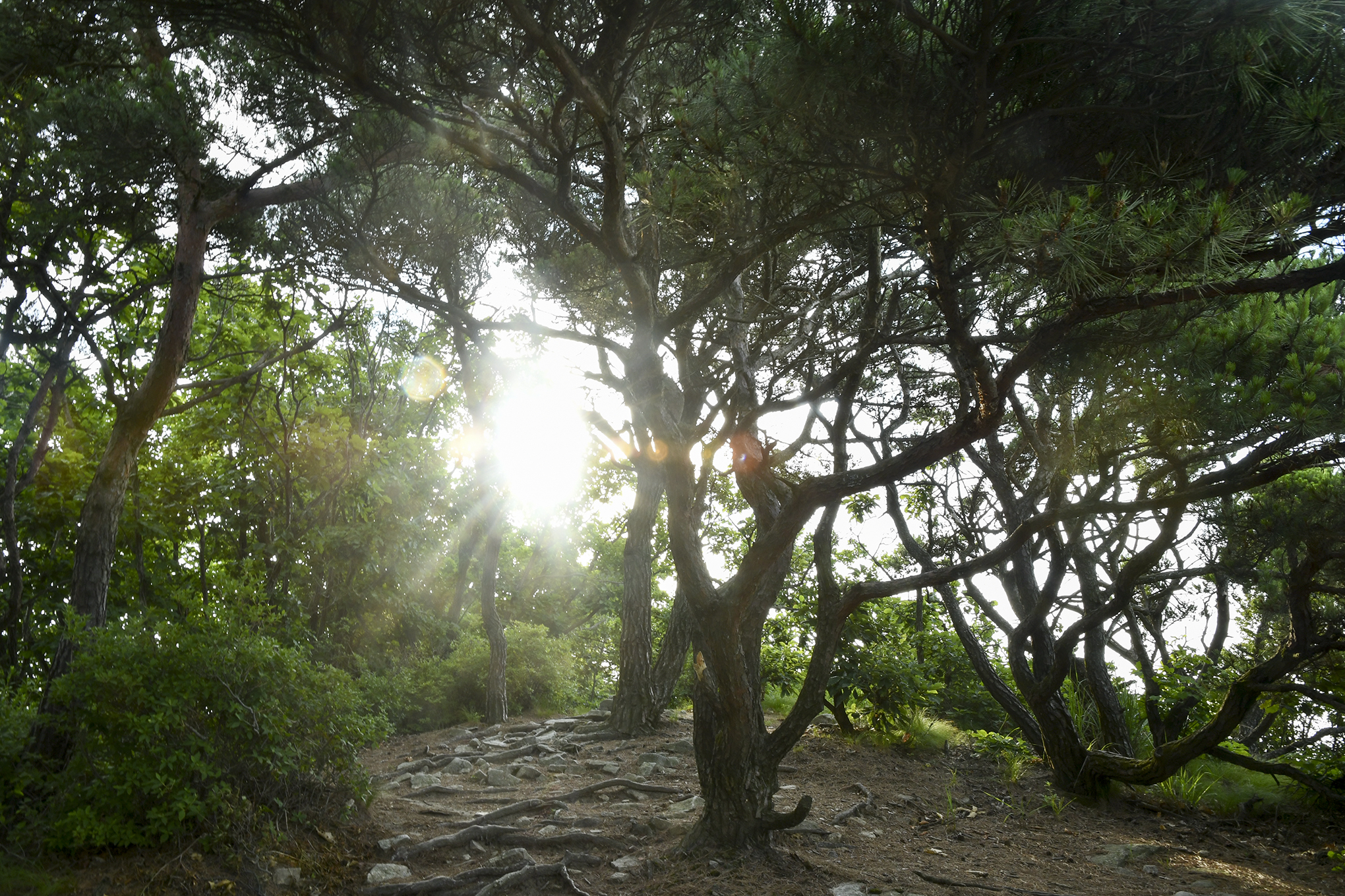 지나왔던 소나무 길에도 빛이 잔뜩 스며들었다.
