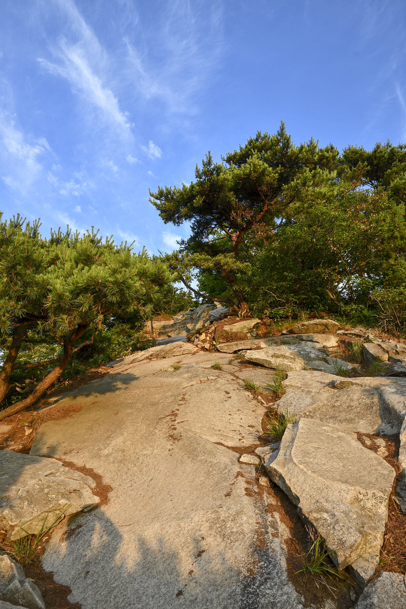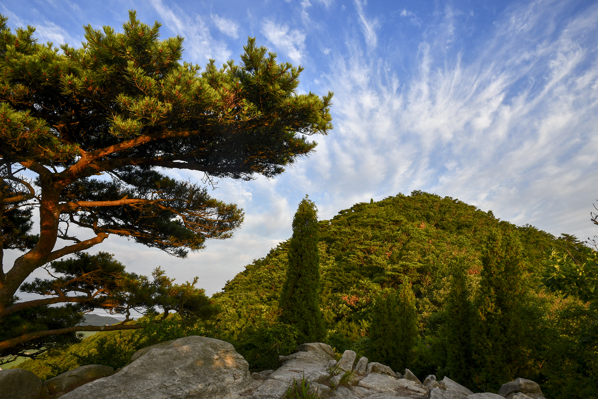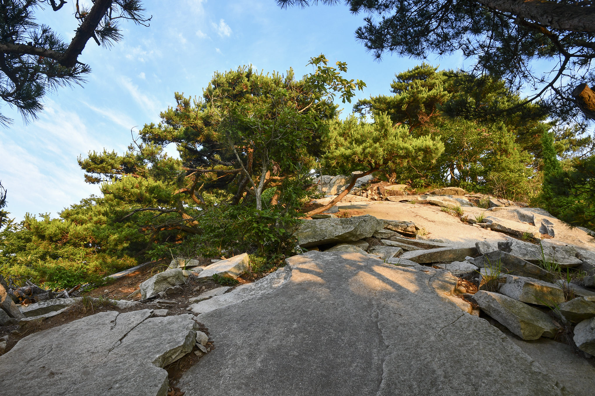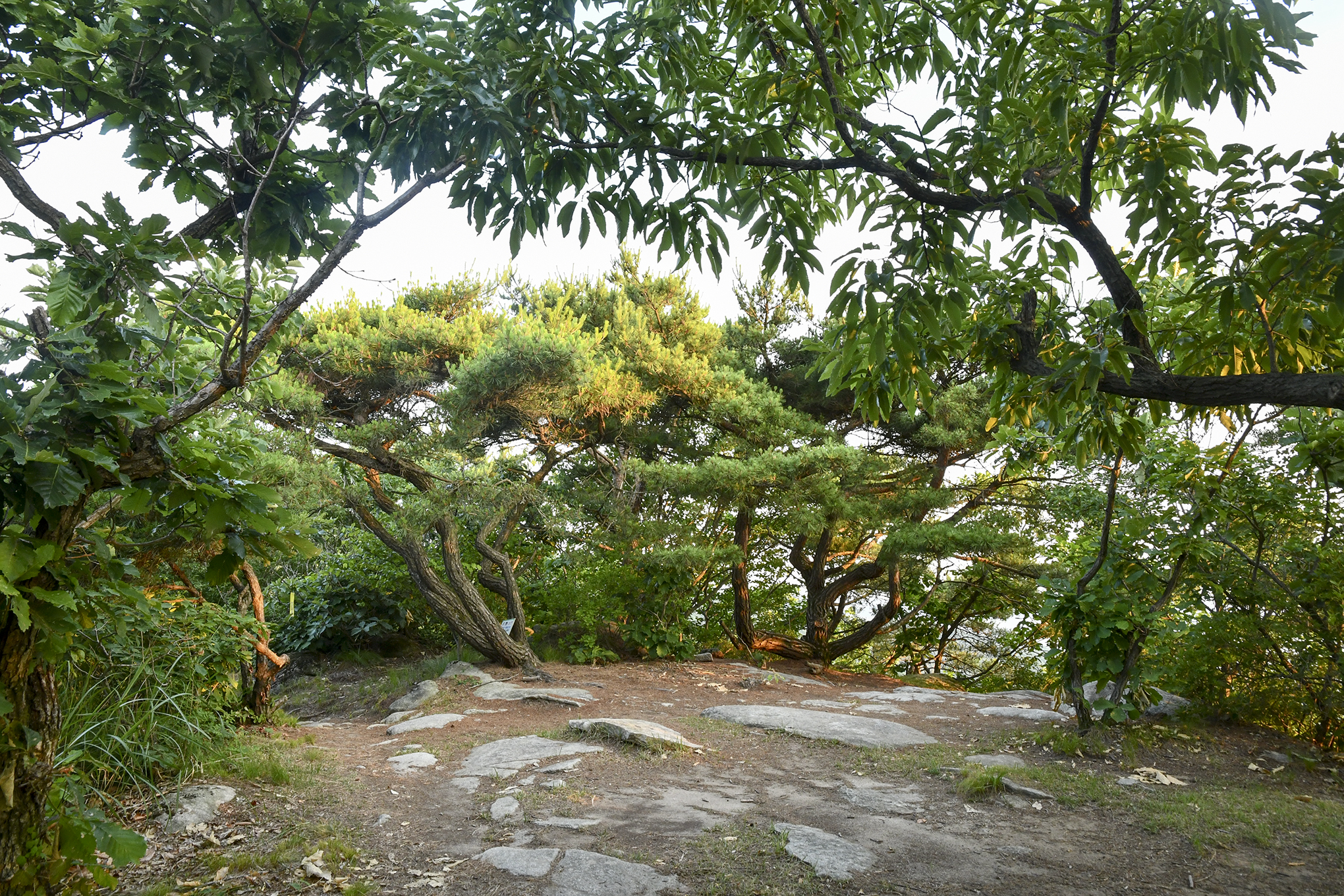 멋드러진 소나무 몇그루, 주변으로 나무들이 많아 조망이 활짝 열리지는 않는다.