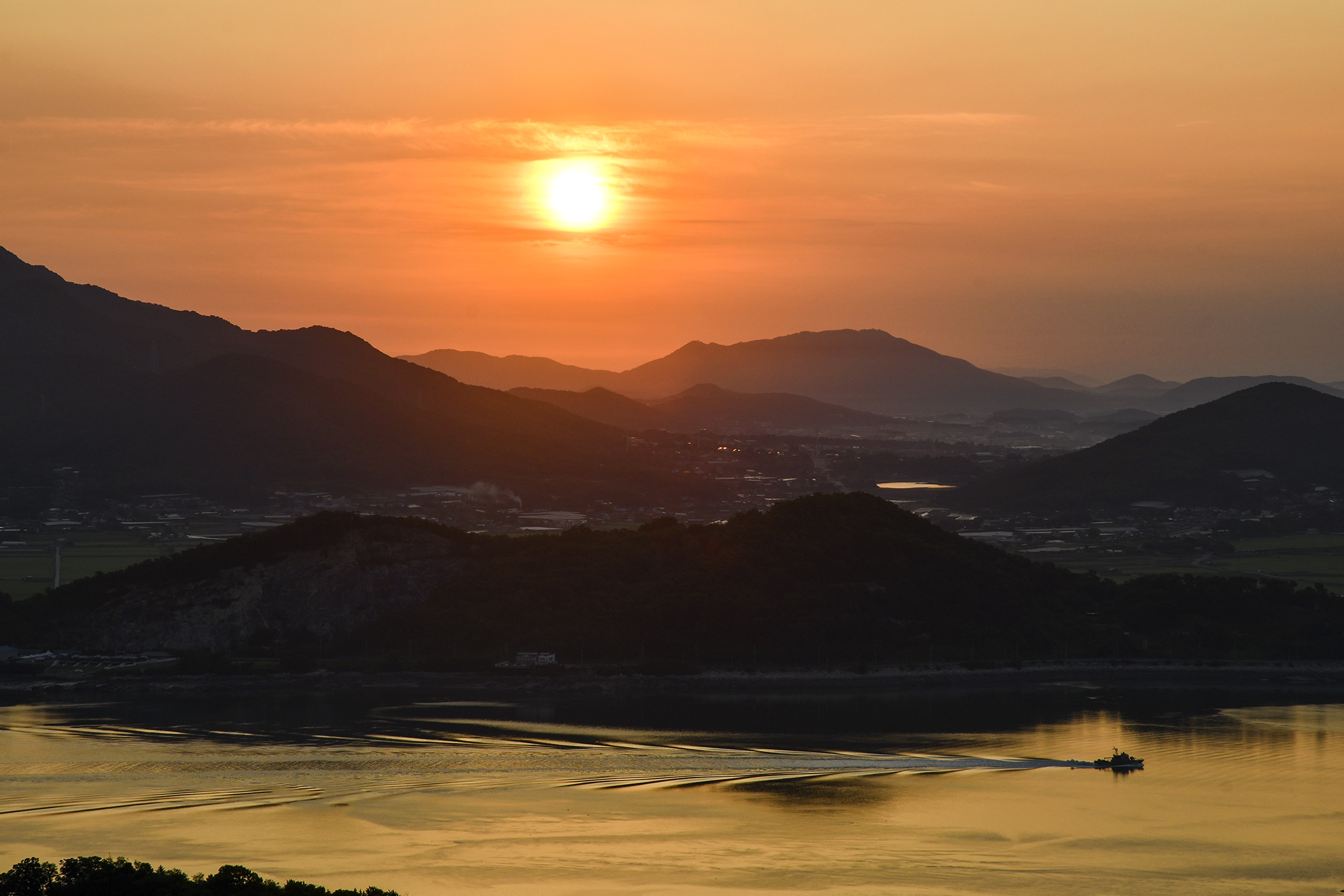 작은 고깃배 한척이 황금빛 물살을 가르며 그림을 만들어 주는 아침,