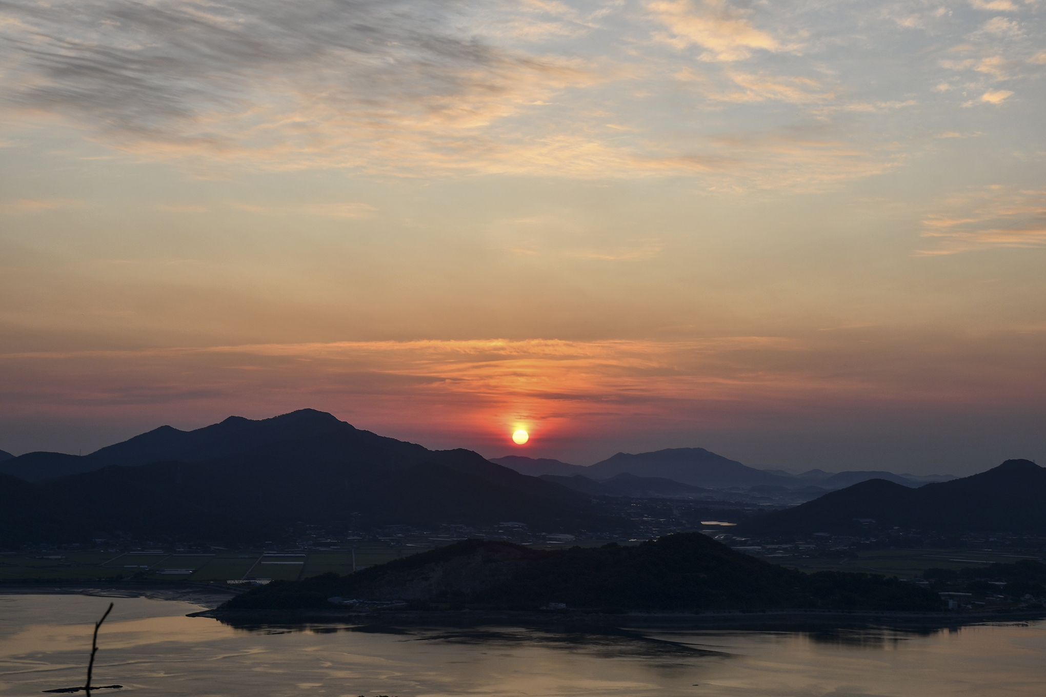 강화의 많은 산군들 사이로 드디어 오늘의 해가 떠오른다.