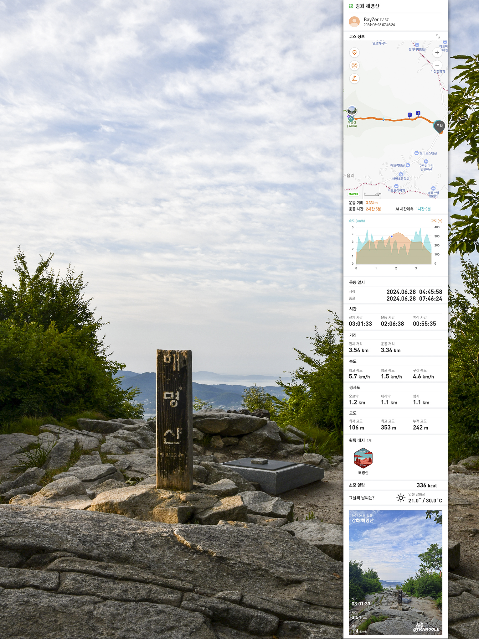 * 시간 : 왕복 3시간01분 (산행시간 왕복 2시간06분, 휴식, 촬영시간 55분)