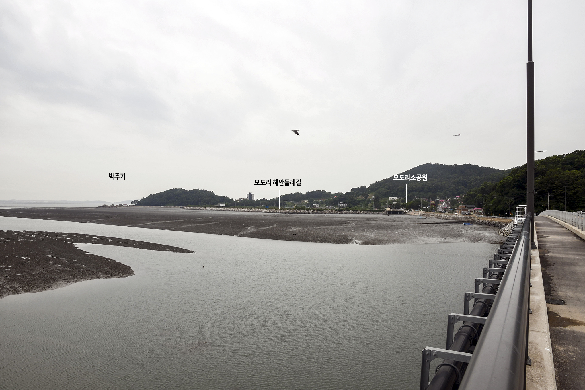 모도 제방 해당화길이 끝나면 박주기까지 0.57km 남은 지점, 차량으로 접근시 만나는 지점으로, 자전거 라이딩으로도 인기있는 삼형제섬이다.